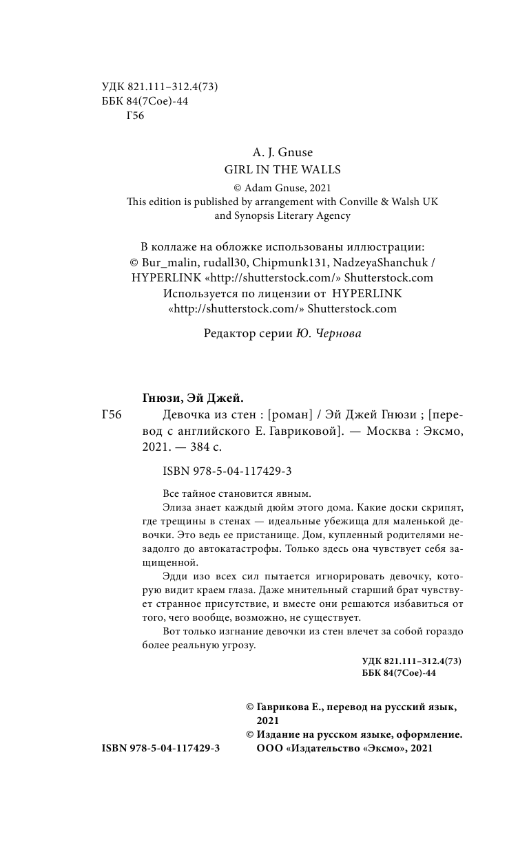 Книга: Девочка из стен (Эй Джей Гнюзи); Эксмо, Inspiria, Редакция 1, 2021