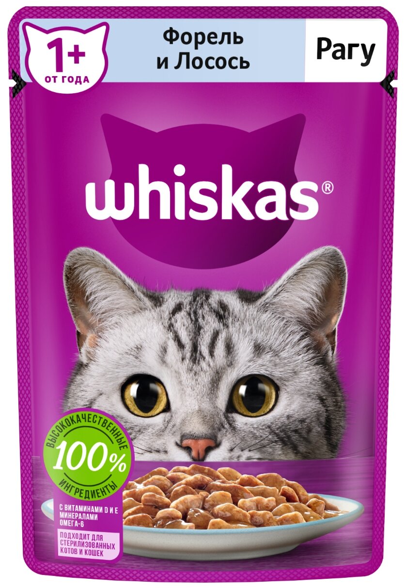 Сервис сравнения цен СкидкаГИД предлагает сравнить цены на товар «Корм для кошек Whiskas Рагу с форелью и лососем 75г»