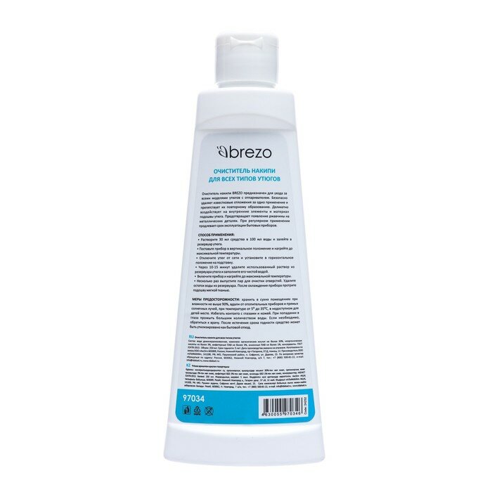 Данный очиститель накипи Brezo предназначен для ухода за утюгами с отпаривателем. Безопасно удалит известь за одно применение и воспрепятствует повторному образованию, также предотвращает появление ржавчины на металле. Деликатно воздействует на внутренние элементы и материал подошвы.