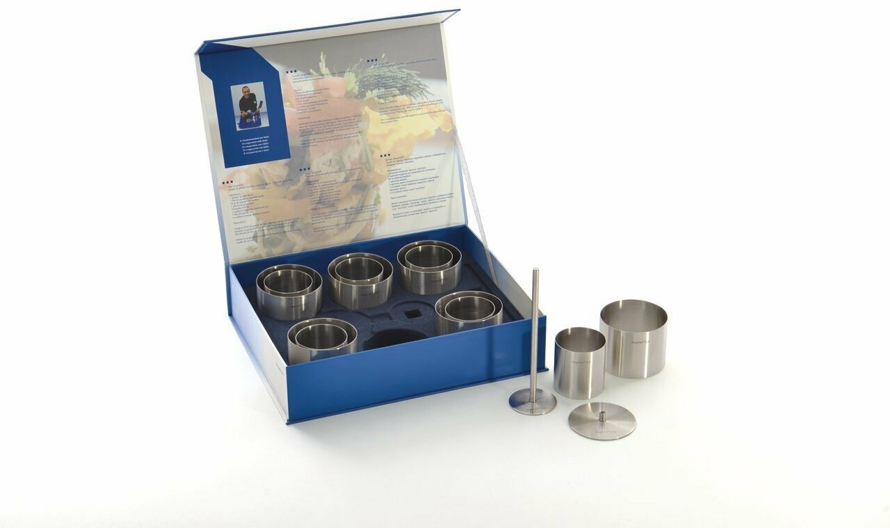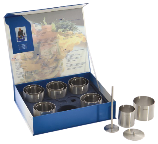 Оправа для сервировки блюд - вид формочки без дна, предназначенной для сервировки блюд в виде башни. Наши оправы изготавливаются из нержавеющей стали 18/10 без каких-либо швов, в которые могла бы забиться пища. Комплект состоит из нескольких оправ, в которых можно сформировать башенку, и дисков со стержнями. Диск имеет тот же диаметр, что и оправы, и используется, чтобы утрамбовать в них ингредиенты. После снятия формы получается башенка из вкусных ингредиентов. Используя такие оправы, Вы сможете всегда придать вашим закускам, основным блюдам или десертам праздничный вид. Большинство оправ имеют традиционную круглую форму. Вам интересно что-нибудь еще более причудливое? В этом случае ознакомьтесь с оправами для сервировки блюд Neo!Состав набора:6 шт круглая оправа 7,5х6см6 шт круглая оправа 5,5x6см1 шт круглый пресс 7см1 шт круглый пресс 5см1 x стержень 16см