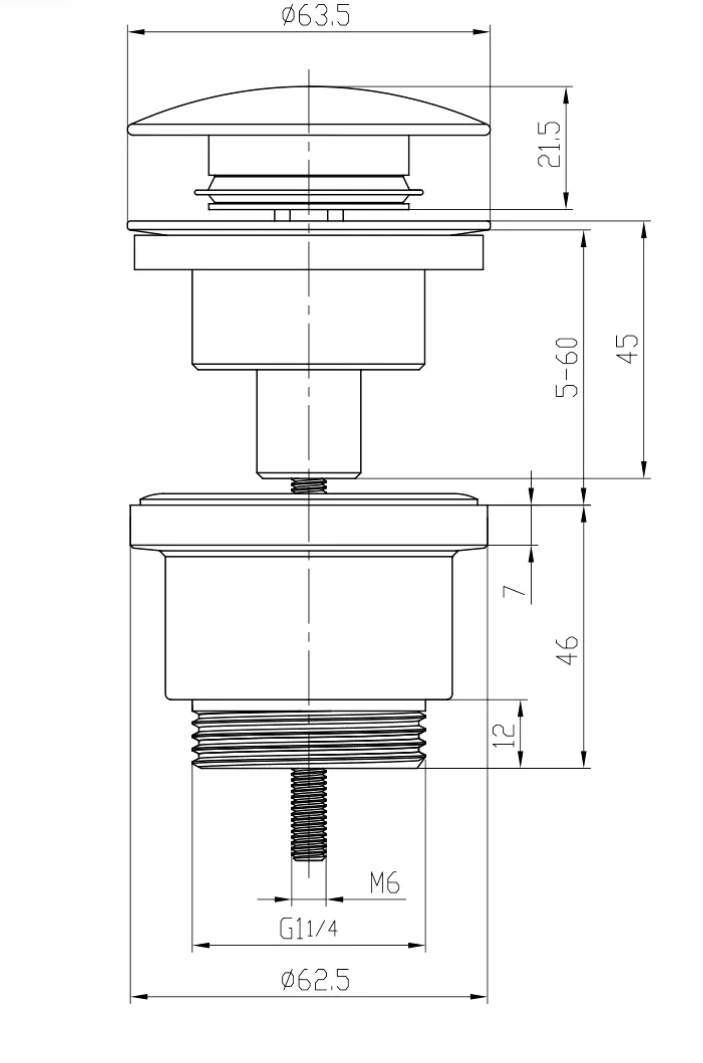 Универсальный донный клапан Lemark Click-clack для слива диаметром 32 мм имеет круглую крышку размером 63.5 мм и изготовлен из латуни. Универсальность данного клапана означает использование как в раковинах с переливом, так и без него. В устройстве выпуска других донных клапанов имеется специальное отверстие для перелива. Универсальный же клапан состоит из двух частей с возможностью регулировки высоты под высоту слива раковины. Расстояние между верхней и нижней частью регулируется от 5 до 60 мм, что и позволяет сопоставить клапан с выходом перелива раковины. Механизм Click-clack (Клик-клак) назван созвучно своему действию – при нажатии на крышку клапан закрывается, при повторном нажатии – открывается.