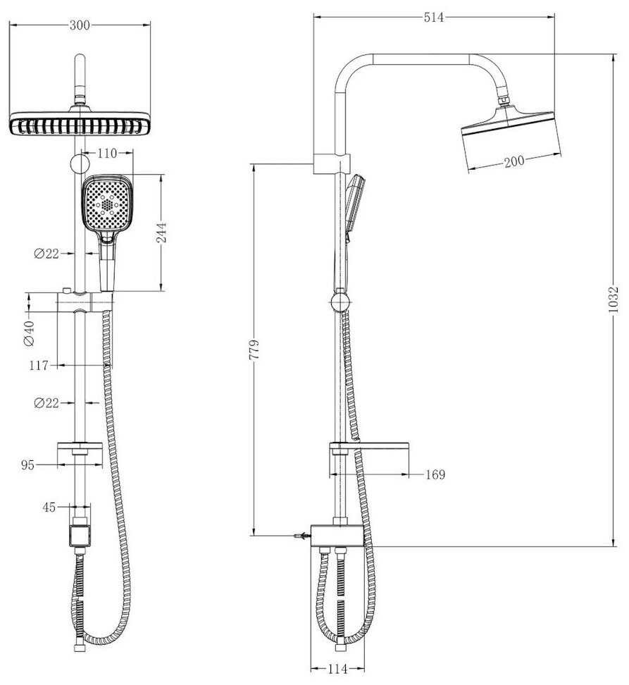 - Размер верхнего душа (ШхД): 300х200 мм.