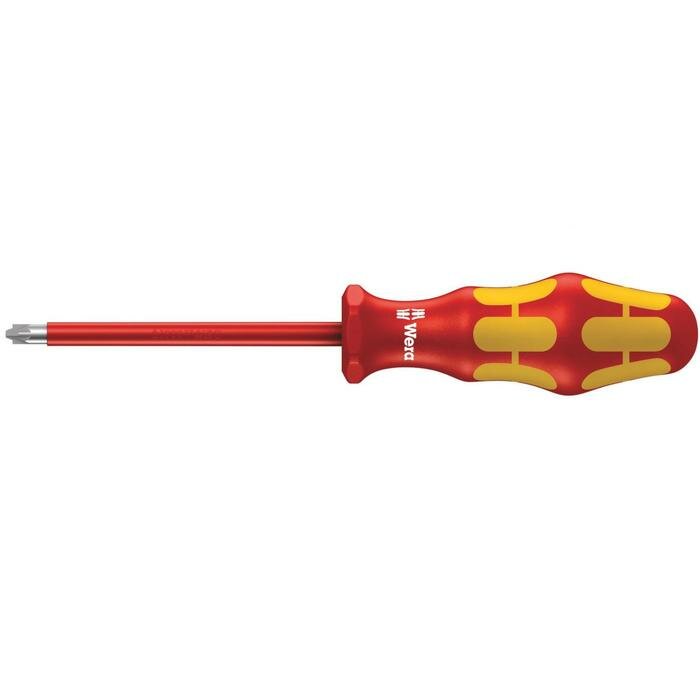 Отвертка 165i PZ/S 1/80мм WE-006190 WERA - инструмент для проведения безопасных работ под напряжением до 1000 В. Прошла испытания на пробивную прочность при 1000 В на водяной бане и была проверена на изоляцию. Отвертка оснащена удобной многокомпонентной рукояткой которая, благодаря наличию шестигранной формы на конце, не перекатывается на рабочем месте. Инструмент подойдет как для новичка, так и для профессионала и прослужит в течение долгого времени.