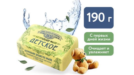 Туалетное мыло для детей предназначено для ухода за нежной кожей малышей. Детское мыло помогает снять покраснение и восстановить ровный цвет кожи. Глицерин в составе мыла препятствует излишнему просушиванию и удерживает влагу, создавая защитный барьер на коже. Приятный запах детского мыла заинтересует кроху и позволит сделать водные процедуры легкими и веселыми. Мыло прекрасно подойдет и для взрослых.