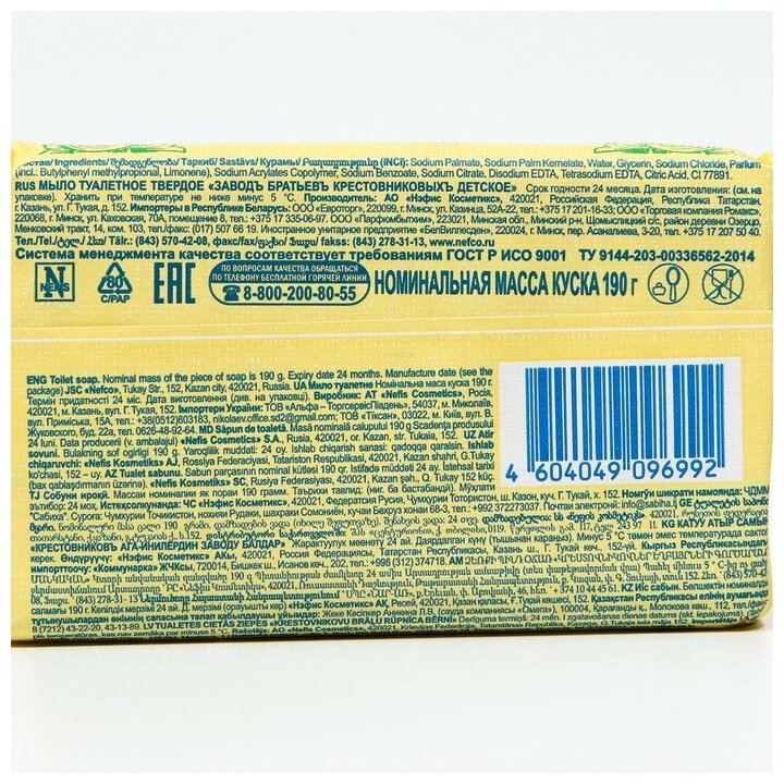 Сервис сравнения цен СкидкаГИД предлагает сравнить цены на товар «Мыло детское Заводъ Братьевъ Крестовниковыхъ 190г»