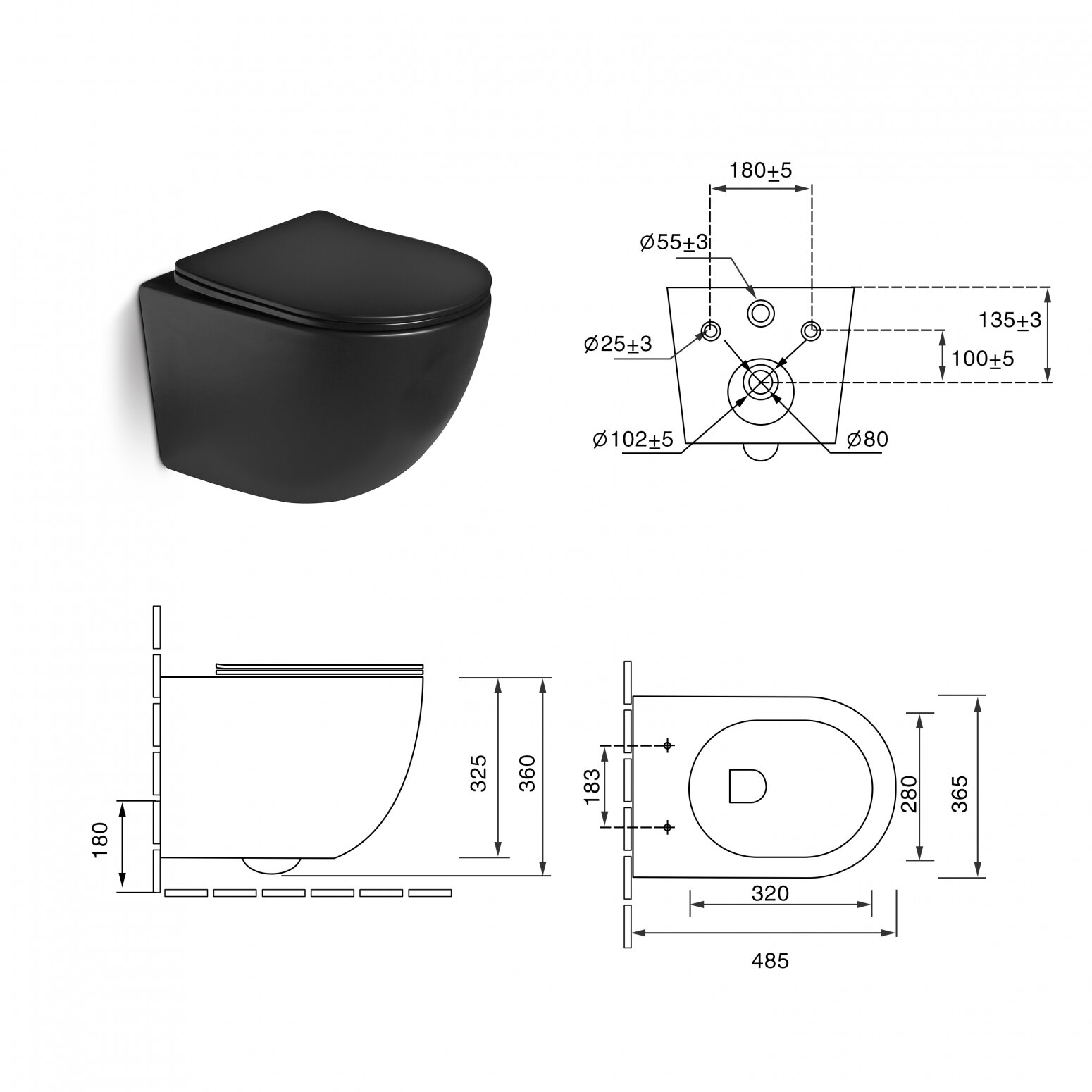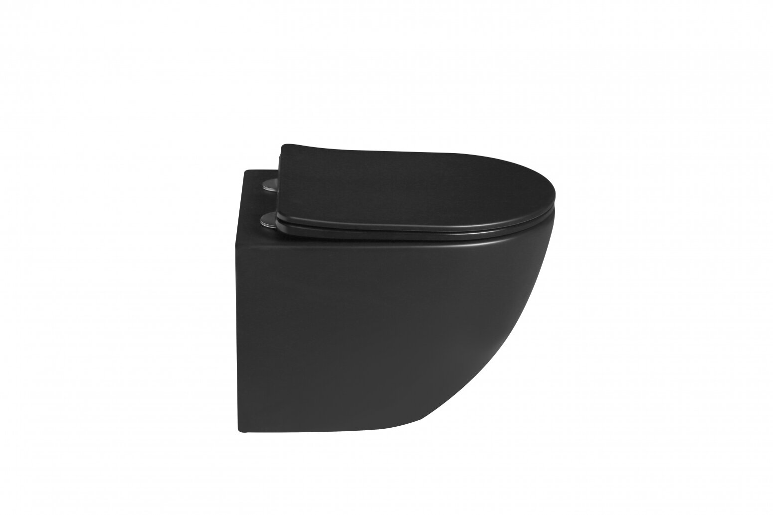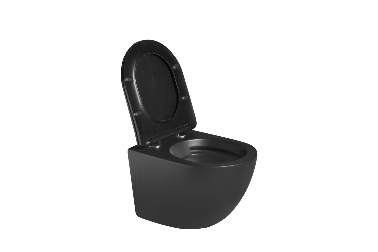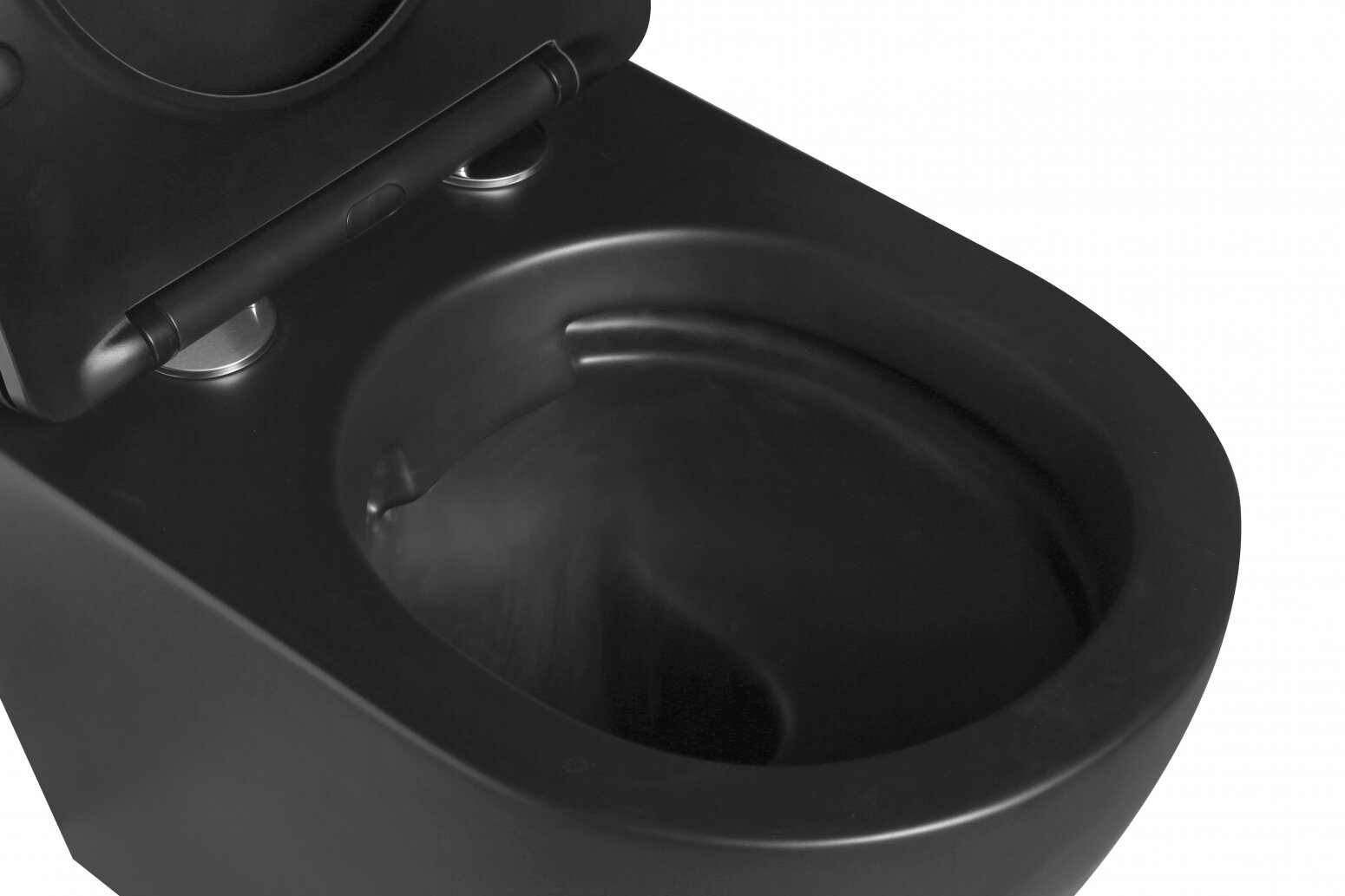 Комплект:унитаз подвесной, безободковый, ультратонкоесиденье микролифт, черный, матовый + инсталляция с кнопкой, черная матовая (квадратная)
