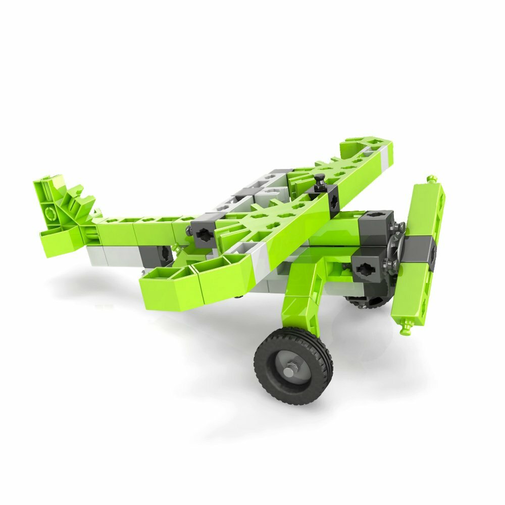 Разнообразие деталей позволит собрать не только 3 модели по инструкции, но и создавать собственные конструкции. Модели в наборе копируют легендарные воздушные суда: первый самолет братьев Райт, винтовой самолет, махолет Да Винчи.