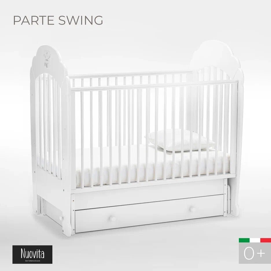 Кроватка Нуовита Парте Свинг рассчитана на применение с первых дней жизни новорожденного. В этой модели реализован современный эргономичный способ укачивания — качание выполняется при помощи поперечного маятникового механизма. Для комфортного размещения под