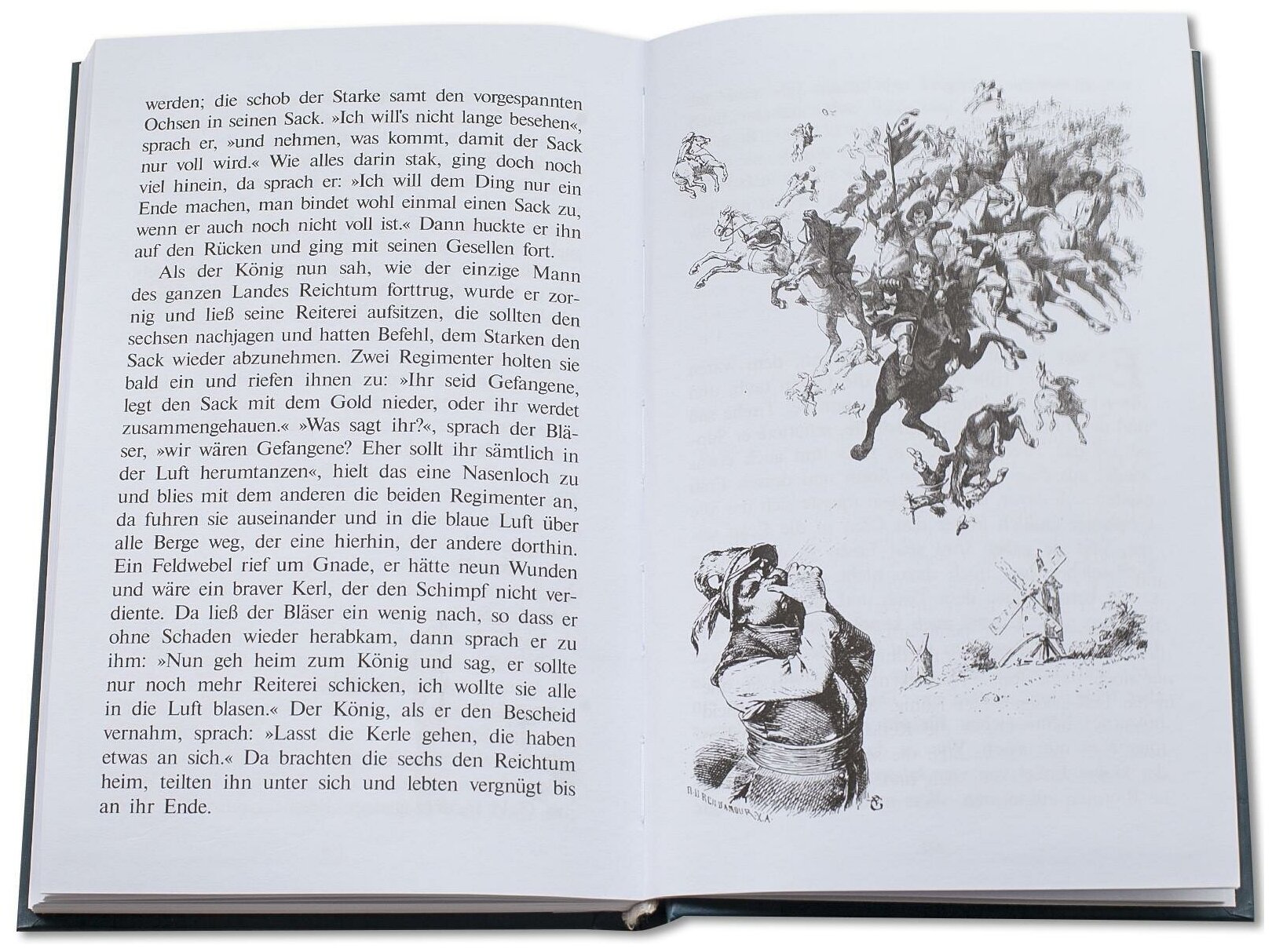 Сказки братьев Гримм публикуются в соответствии с правилами современной немецкой орфографии (2004-2006). Русский перевод сделан на рубеже XIX и XX веков детским писателем, издателем и редактором А.А.Фёдоровым-Давыдовым (1875-1936). В аннотации к дореволюционному тому говорится: "В издание входят сказки и детские легенды, представляющие из себя, за небольшим исключением, почти буквальный перевод немецкого подлинника". В тексте сохранены имена персонажей, которые сегодня покажутся читателю непривычными: Белоснеженка, С-Пальчик, Глупышок.