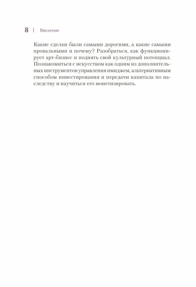 Книга будет интересна любителям и коллекционерам, частным банкирам и бизнесменам. Полученная информация позволит прокачать необходимый в наше время навык креативности и творчества, понять финансовую сторону искусства и научит думать и действовать по-новому в эпоху неизбежных изменений и возможностей.