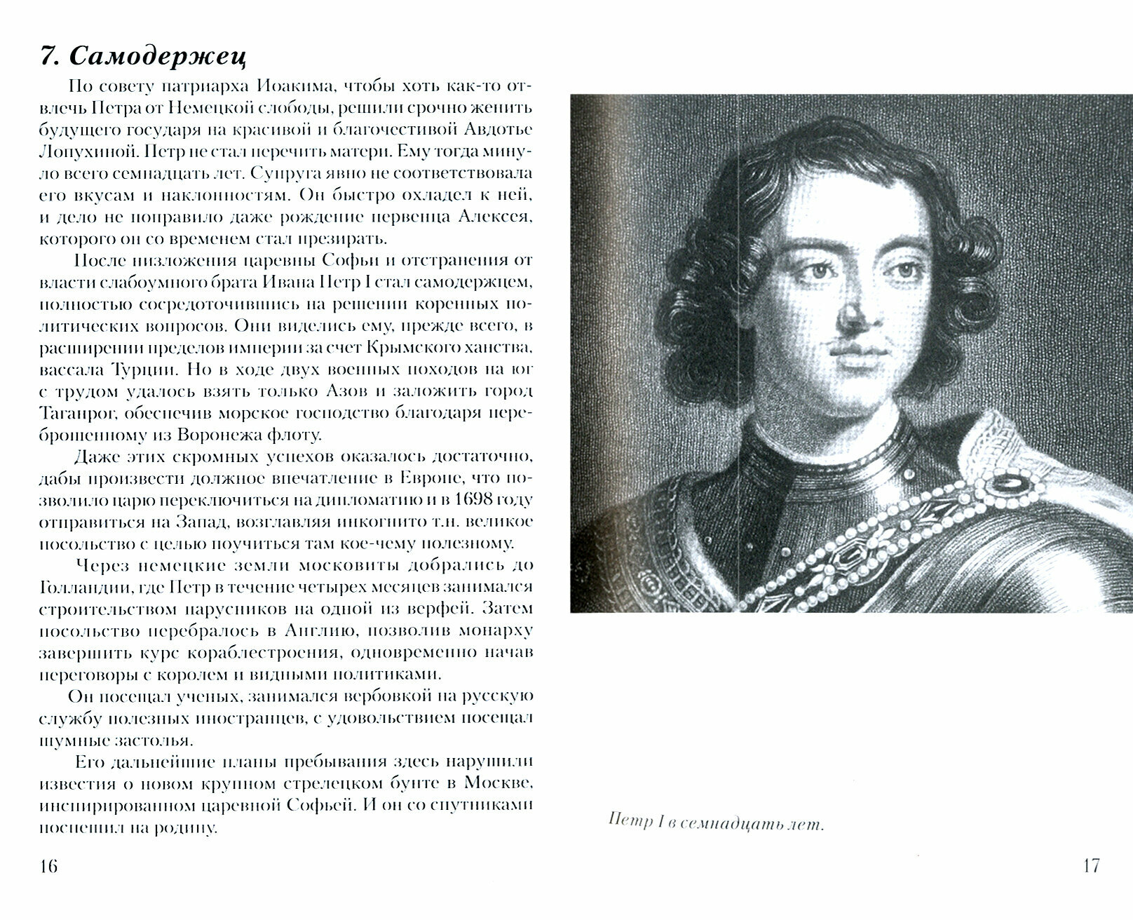 В книге представлена беллетризованная биография одного из выдающихся Романовых – Петра I, который, несмотря на некоторые свои несовершенства, был несравненно выше своих предшественников, хотя бы тем, что уже молодым начал осуществлять великие реформы, давшие России XVIII века новый вид с точки зрения политической, экономической и общественной. Тогда ничтожное меньшинство «еврорусских» получило возможность жить «как на Западе», что усугубило классовые противоречия в стране, приведшие, в конце концов, к революционному взрыву. Биография иллюстрирована редкими фотографиями.