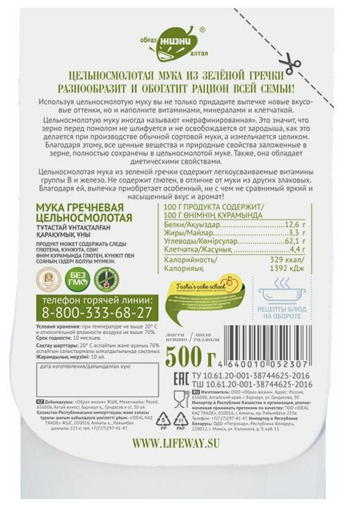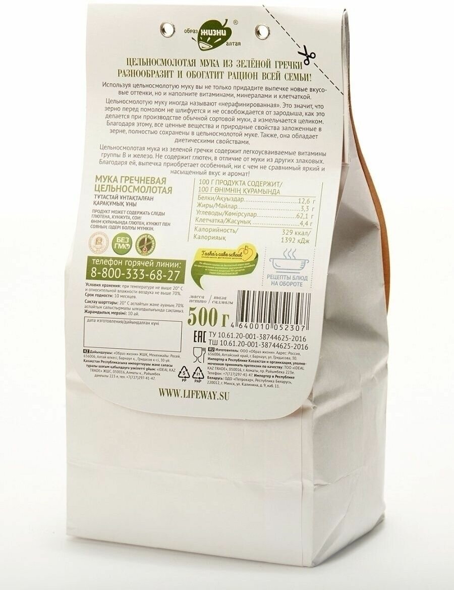 Мука Образ жизни Алтая из зеленой гречки цельносмолотая 500г