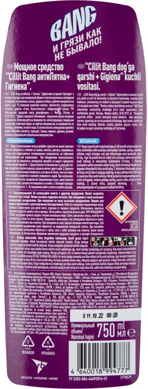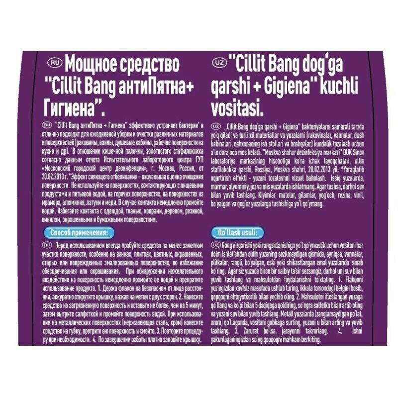 Мощное средство Cillit Bang антиПятна + Гигиена 750мл