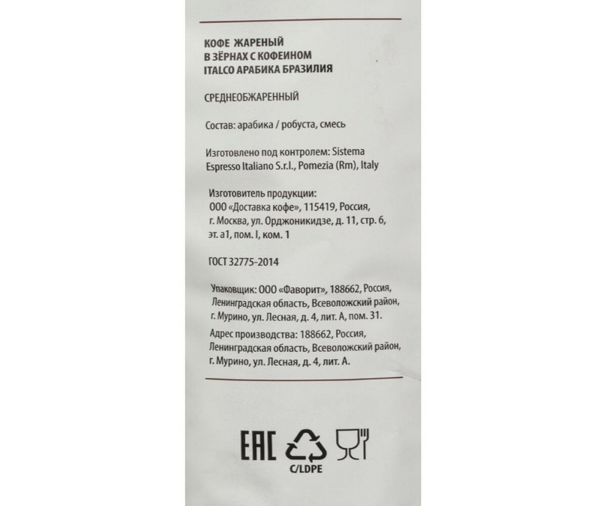 Сервис сравнения цен СкидкаГИД предлагает сравнить цены на товар «Кофе в зернах Italco Arabica Brazil,1000г»