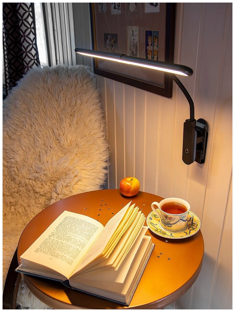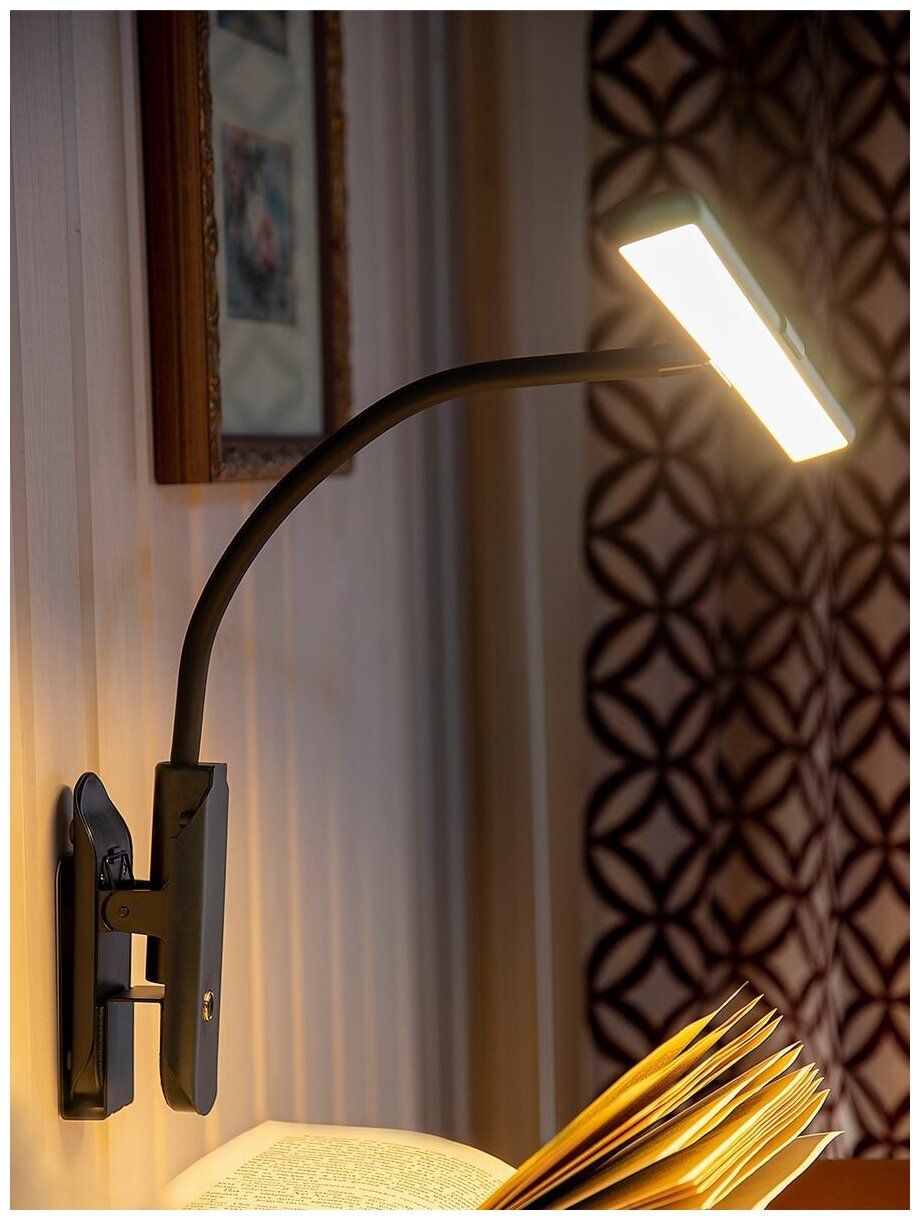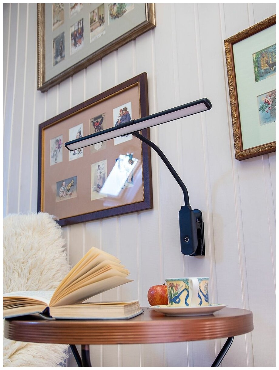 Светильник настольный Lucia Fleks Accu Clip черный пластик ABS+металл, на прищепке, светодиодная лампа 10Вт 350Лм (L555).