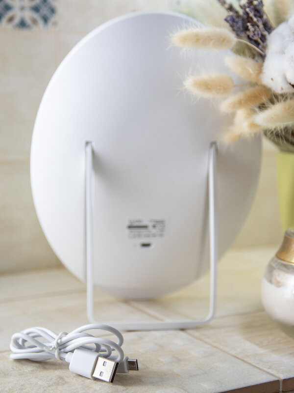 Рекомендуется зарядить светильник - зеркало перед началом использования. Подключите шнур USB к светильнику и блоку питания (5В , 1А). Для зарядки можно использовать любой источник с разъемом USB (в том числе, внешний аккумулятор). Во время зарядки горит индикаторный светодиод. При полном заряде он погаснет.