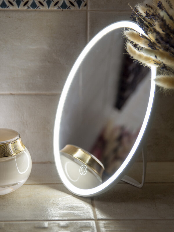 | Описание | Простота и естественность. Зеркало с подсветкой позволит вам комфортно себя чувствовать за туалетным столиком и не нагибаться дополнительно. Выбор одного из трех режимов яркости добавит света при нанесении макияжа. |