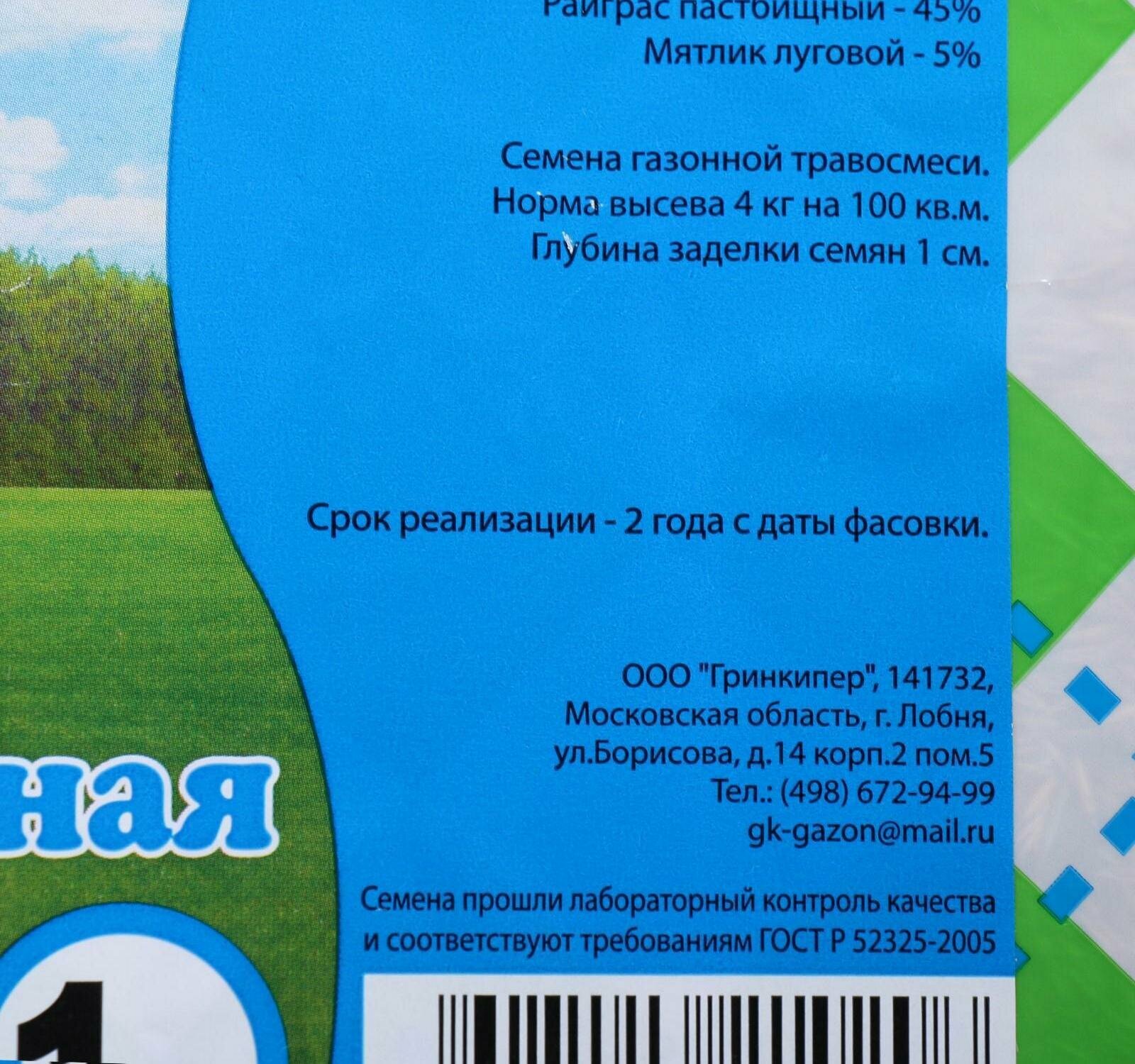 | Состав набора | пастбищный райграс; луговая тимофеевка; овсяница луговая и тростниковидная; луговой мятлик |