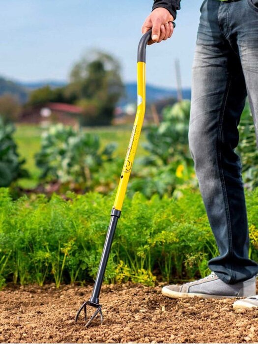 Ручной культиватор служит для удаления сорняков и прополки земельного участка. Механизм регулировки по высоте позволяет подогнать инструмент под свой рост и работать без наклона. Во время эксплуатации распределение нагрузки осуществляется равномерно, что способствует высокой эффективности. Конструкция модели дает возможность создавать лунки под посадку цветов, рассады максимально быстро и легко. Для удобства хранения и транспортировки изделие разбирается.