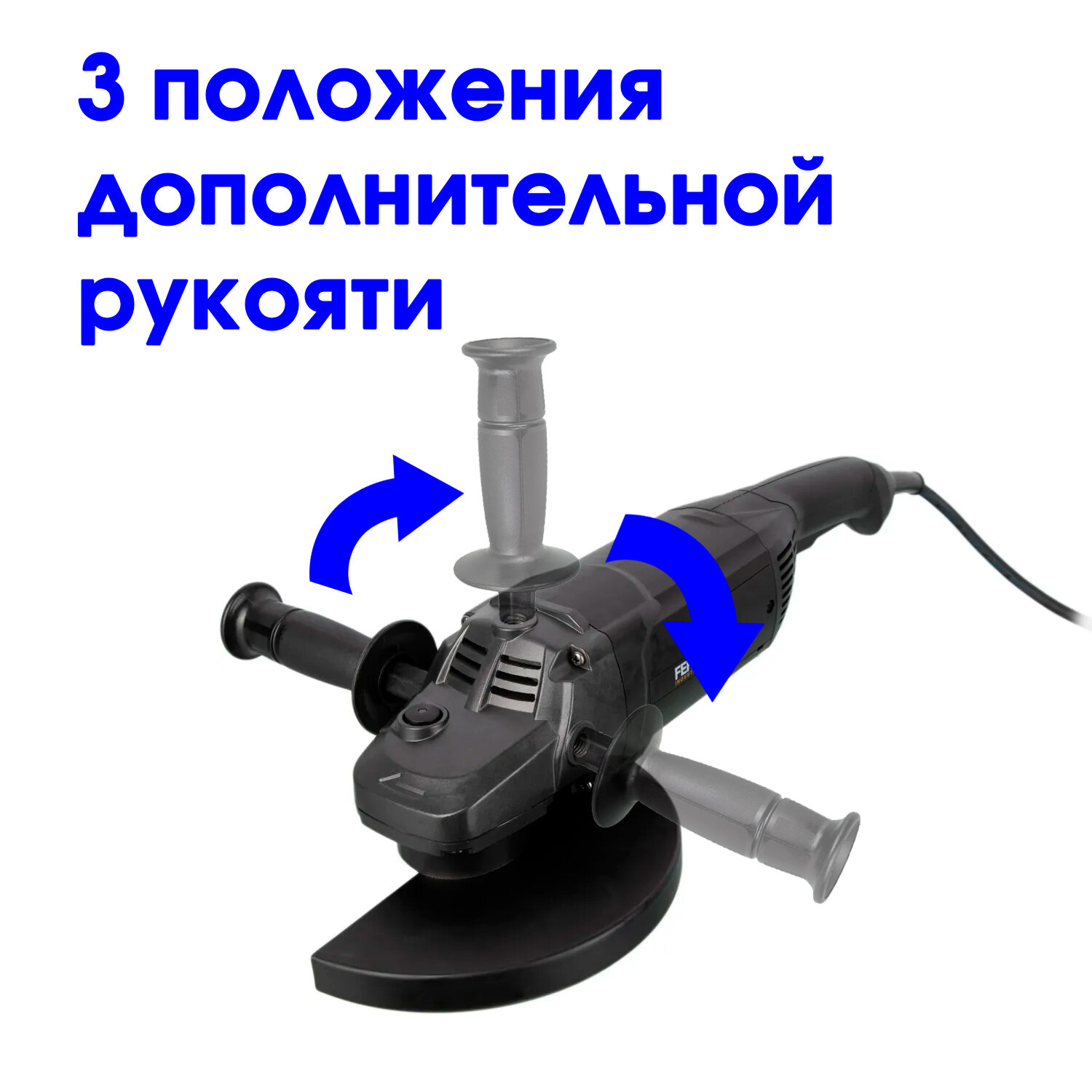 Плавный пуск используется для включения инструмента без рывков путем ограничения пускового момента. Блокировка шпинделя способствует быстрой смене шлифовальных дисков. С инструментом вы всегда работаете безопасно благодаря ручке, которую можно разместить слева, справа, а также сверху.