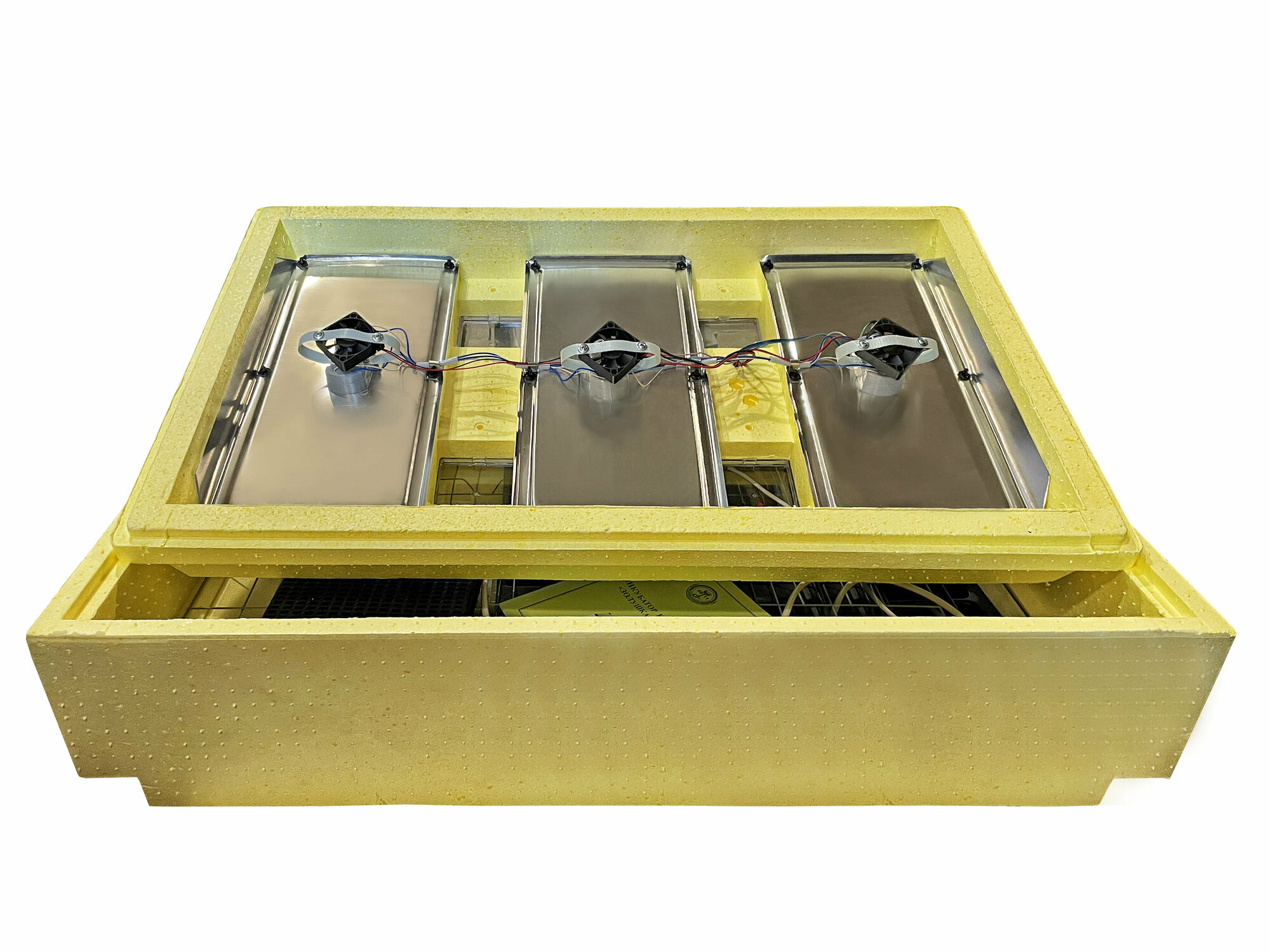 Запатентованная система водяного обогрева в паре с новым терморегулятором обеспечивают еще более мягкий и равномерный прогрев яиц без перепадов температуры, повторяя инкубационные условия, как если бы это делала наседка. Корпус инкубатора изготовлен из пенополистирола — материала, обладающего оптимальными для данного прибора термодинамическими свойствами. В случае отключения электроэнергии, инкубатор автоматически переходит на работу от аккумулятора, отображая смену источника питания на дисплее. Все это приближает процесс инкубации к естественному, поэтому при закладке здоровых яиц инкубатор «Золушка»-2020 обеспечивает 100% выводимость.