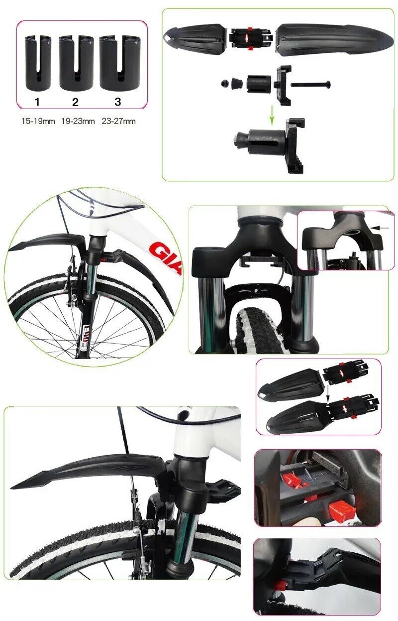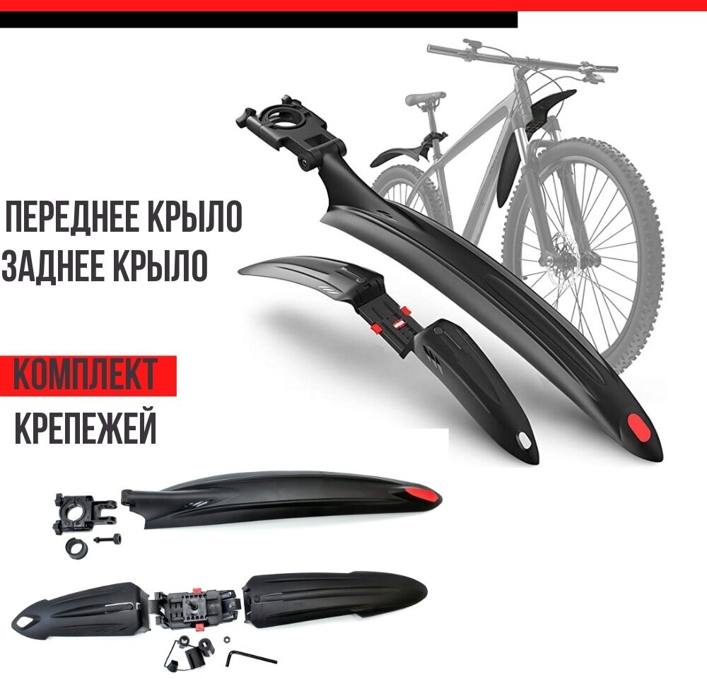Комплект быстросъемных крыльев продуман до мелочей и имеет современный и стильный дизайн. Оба крыла имеют отражающие поверхности для безопасности движения. Они прекрасно сочетаются с любым типом и цветом велосипеда, придавая ему элегантный и завершенный вид. Это не только функциональные крылья, но и стильный аксессуар, который подчеркнет вашу индивидуальность и вкус.Универсальные велосипедные крылья подойту к горным, подростковым, hardtial велосипедам с размерами колес 24 26 27,5 и 29 дюймов. Это означает, что вы можете использовать эти крылья на разных велосипедах, не зависимо от их типа или модели. Это отличное решение для велосипедистов, которые имеют несколько велосипедов или планируют обновить свой велосипед в будущем.Практичный набор, состоит из переднего и заднего крыла, выполненных из плотного 100% востанавливаемого, ударопрочного пластика черного цвета и надежного крепежа в комплекте.Переднее крыло для велосипеда крепится с помощью кронштейна, заднее крыло - к подседельному штырю. В комплект входит набор пробок различного диаметра, что позволяет легко устанавливать быстросъемное крыло в шток вилки разного диаметра. Адаптированы под все типы тормозов v-brake или дисковый. Вы можете легко установить и снять крылья, не тратя много времени и усилий. Это особенно полезно, когда вы хотите быстро подготовить свой велосипед к поездке или хранить его в чистоте после езды.Велокрылья обеспечат надежную защиту от грязи для любителей велоспорта. Вы сможете спокойно кататься по мокрой поверхности и передвигаться в дождь, если он вас случайно настиг.Крылья для велосипеда 24, крылья для велосипеда 26, крылья для велосипеда 27,5, крылья для велосипеда 29, крылья для велосипеда, крыло для велосипеда, крылышки, форвард, велотовары, крылья на велосипед, велосипед спортивный, крыло для велосипеда 29, брызговики для велосипеда, товары для велосипеда, велоспорт, крылья на велосипед 29, набор для велосипеда, крылья велосипедные, крылья велосипедные 29 - эти ключевые слова отражают широкий спектр характеристик и возможностей, которые предлагает наш комплект крыльев.Спортивное назначение: велоспорт, туризм, фитнес. Независимо от того, каким видом активности вы занимаетесь, наши крылья подойдут для любых условий и задач. Насыщенная спортивная жизнь, велопрогулки на природе или тренировки в фитнес-клубе – с этим набором вы всегда будете в центре внимания!Закажите наши крылья для велосипеда прямо сейчас и окунитесь в мир комфортного и безопасного велосипедного спорта!