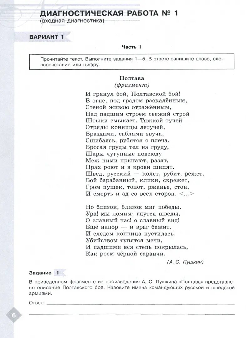 Диагностические работы по литературе для 8 класса составлены на основе ФГОС и Примерной основной образовательной программы основного общего образования.