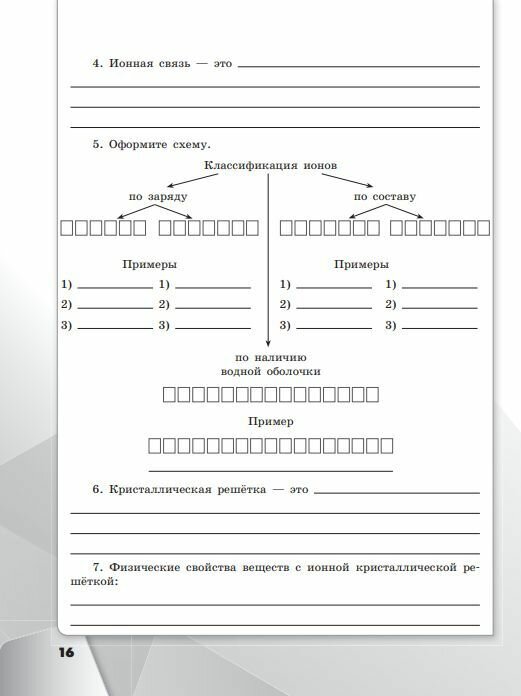 В рабочей тетради материал к каждому параграфу учебника разделён на две части: первая часть позволит ученику в сотрудничестве с учителем создать опорный конспект и выполнить задания на понимание темы урока, вторая - закрепить полученные знания, выполняя задания разного уровня сложности.