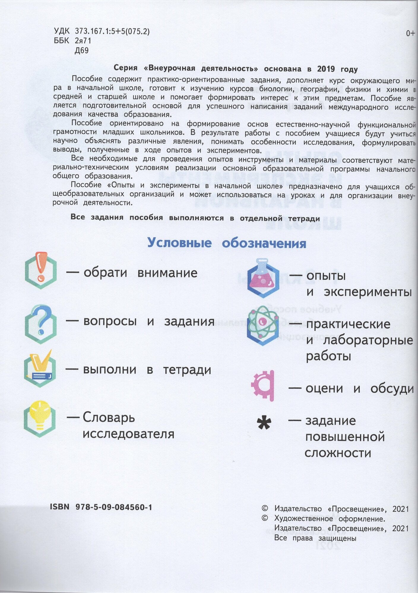Пособие "Опыты и эксперименты в начальной школе" предназначено для учащихся общеобразовательных организаций и может использоваться на уроках и для организации внеурочной деятельности.