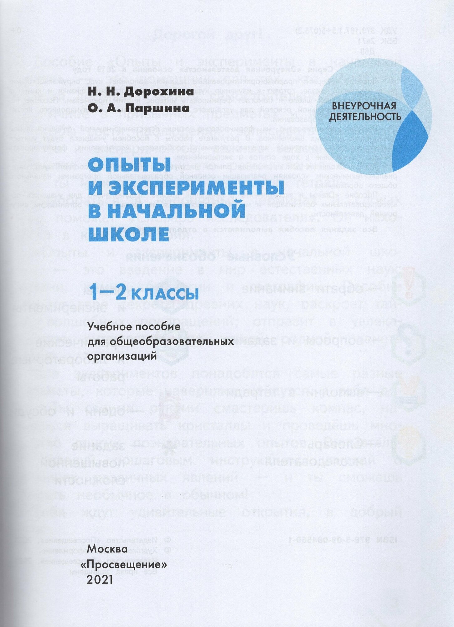 Опыты и эксперименты в начальной школе. 1-2 классы (Паршина Олеся Александровна, Дорохина Надежда Николаевна); Просвещение, 2023