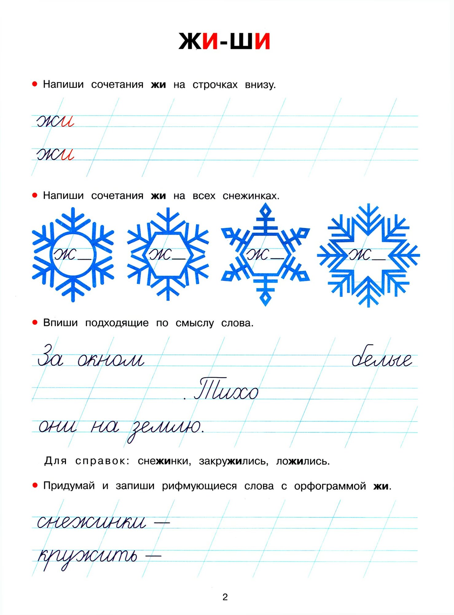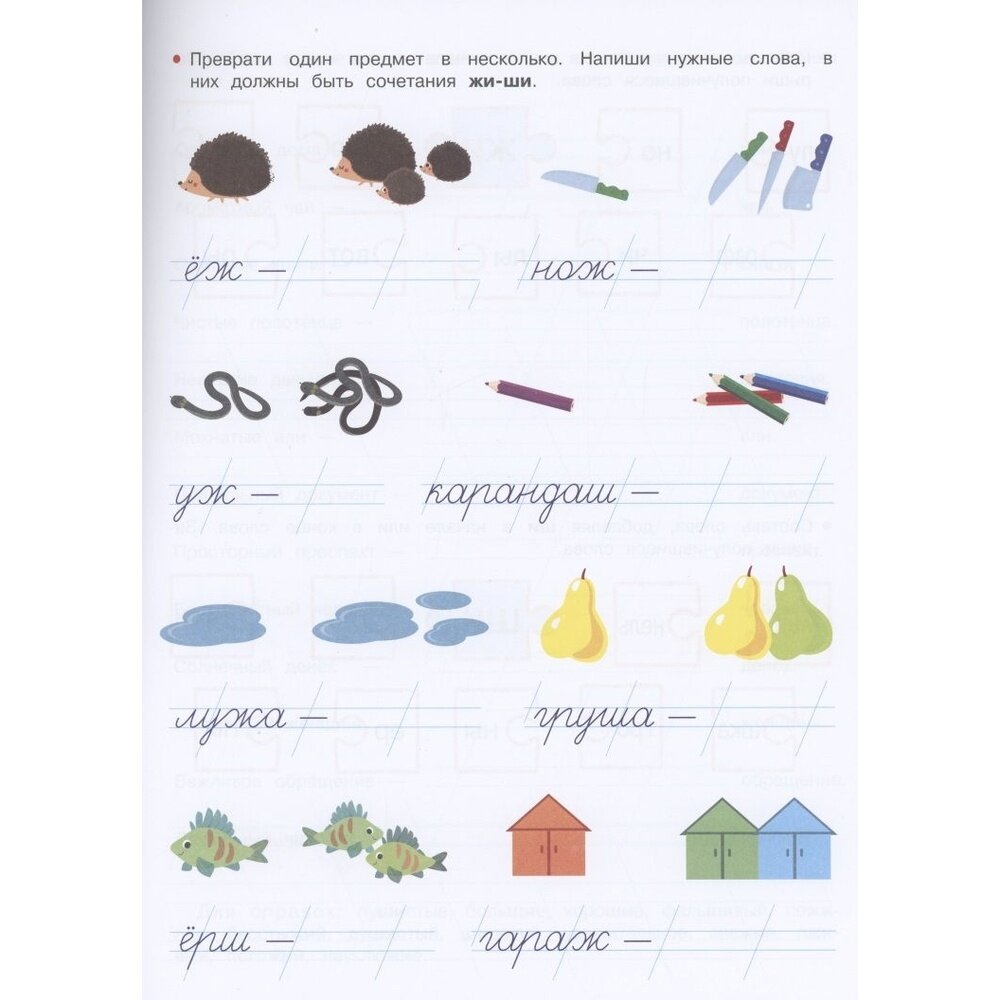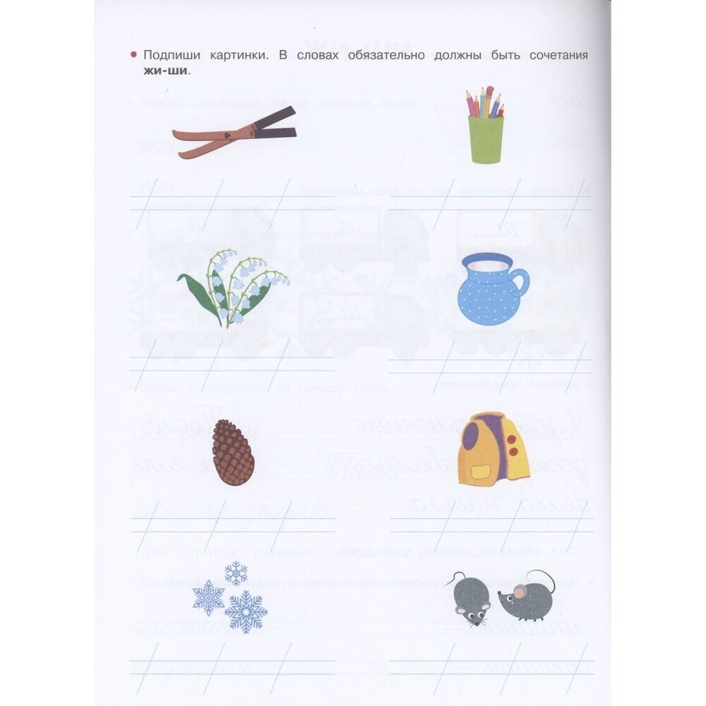 Прописи, занятие 16, стр.32: написание слов с орфограммой ЖИ, ШИ.