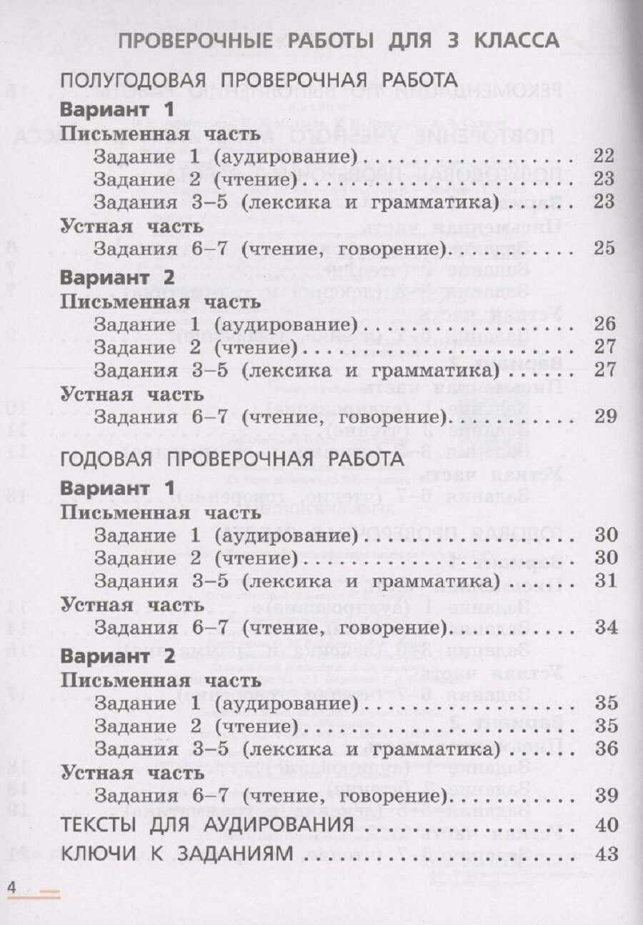 Пособие предназначено для подготовки третьеклассников к участию во Всероссийской проверочной работе по английскому языку и включает в себя полугодовую и годовую проверочные работы, тексты для аудирования и ключи к заданиям. Также в пособие включены проверочные работы, выполнение которых позволит учащимся повторить учебный материал второго класса.Предлагаемое издание может быть использовано как на уроках, так и во внеурочное время, в том числе и для самостоятельной работы учащихся.Данное пособие является частью учебно-методического комплекта "Английский язык" для 3 класса серии "Rainbow English" авторов О. В. Афанасьевой, И. В. Михеевой, К. М. Барановой.2-е издание, стереотипное.