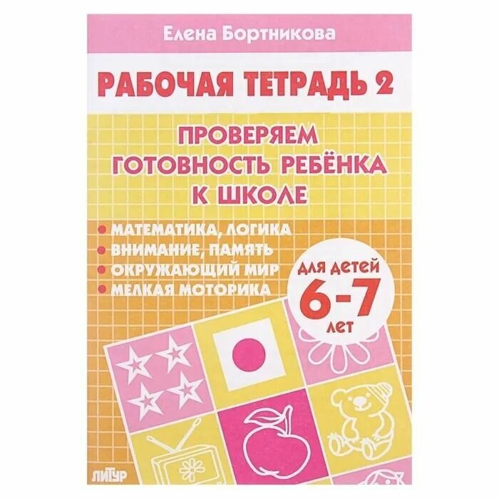В комплект входят рабочие тетради Е. Бортниковой: 1. Знакомимся с геометрией (6-7 лет) 2. Знакомимся с окружающим миром (6-7 лет) 3. Мои первые прописи (6-7 лет) 4. Проверяем готовность ребенка к школе (6-7 лет) 1 часть 5. Проверяем готовность ребенка к школе (6-7 лет) 2 часть Комплект упакован в пакет.