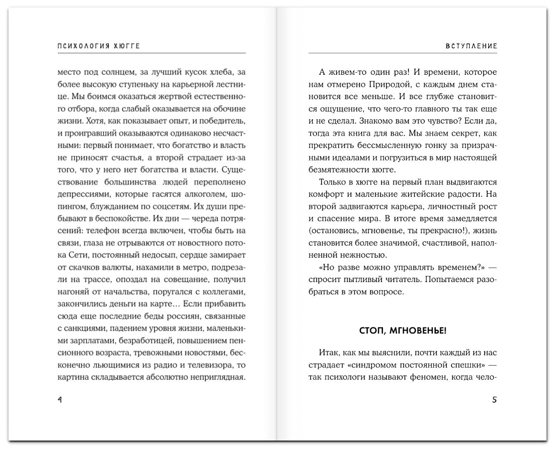 В дополнение к этому книга содержит винегрет умозаключений автора обо все на свете – этикете, вегетарианстве, семейных отношениях и даже размышлениях о весе человеческой души. Все это изрядно приправлено цитатами и выдержками из интервью разного сорта известных людей – от Антона Чехова до Екатерины Варнавы. Как через этот поток разрозненной информации приблизиться к психологии Хюгге для меня остаётся загадкой… -