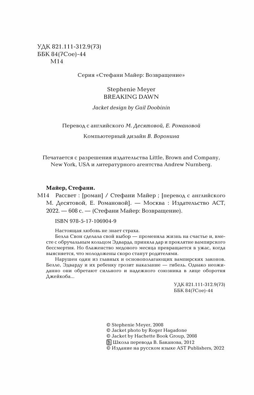 Рассвет (новое оформление) (Стефани Майер); ООО "Издательство Астрель", 2024