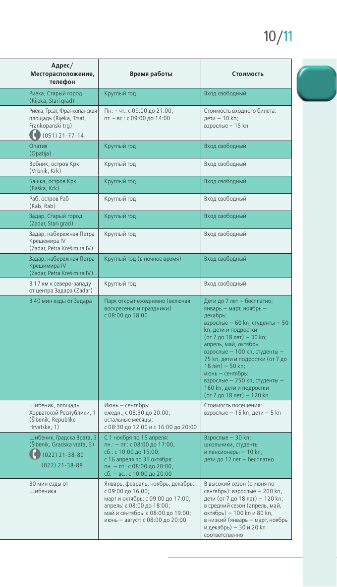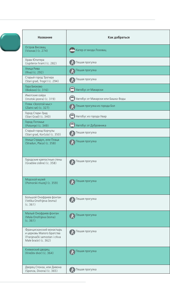 Внутри вас ждет вложенная карта Хорватии с указанием основных мест, которые стоит посетить, схема транспорта и указатель улиц.