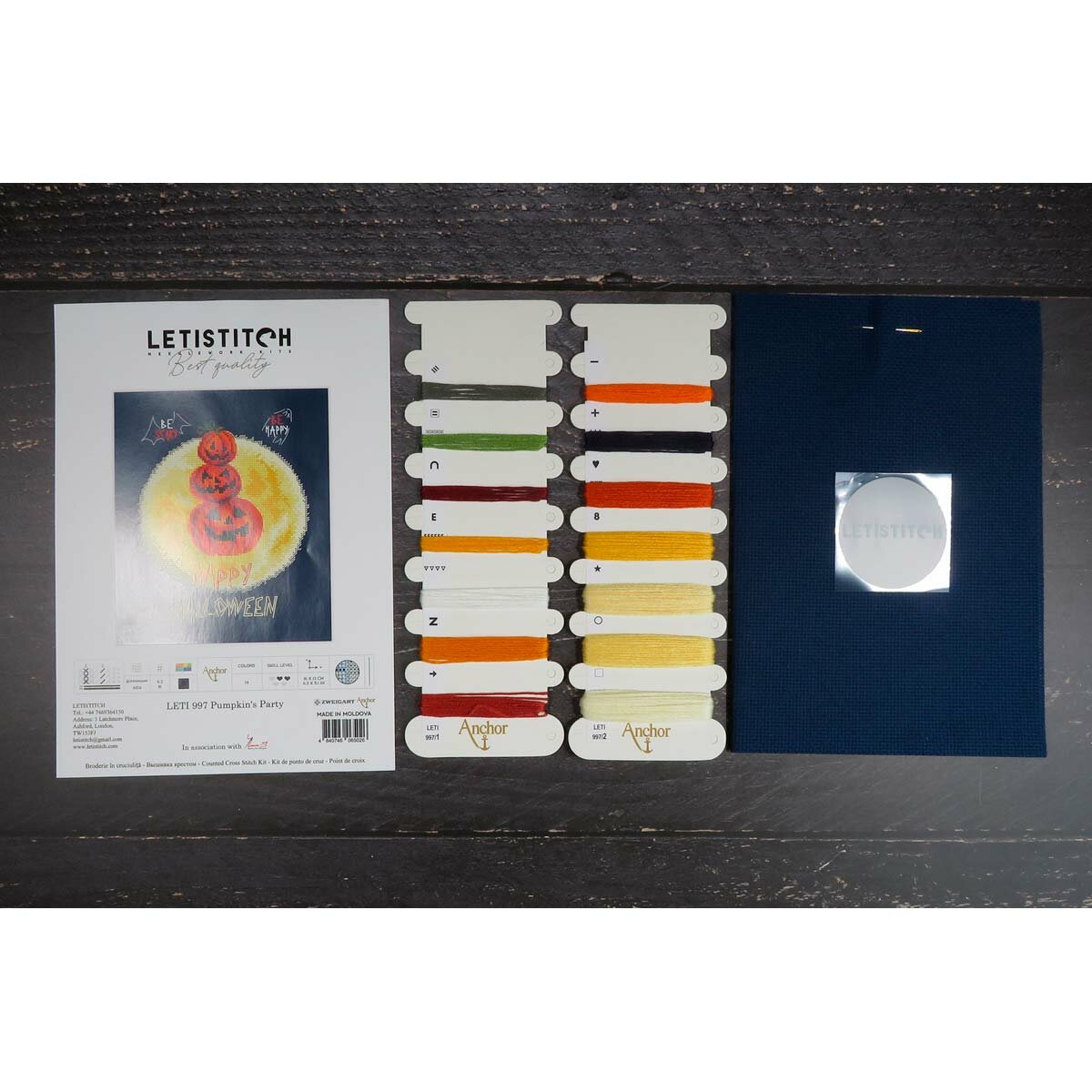 | Комплектация | канва Aida 16 ct темно-синяя; мулине Anchor; схема; игла; инструкция |
