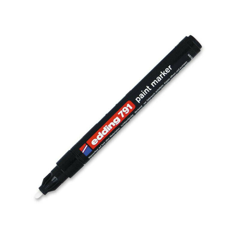Универсальный лаковый маркер Edding 791. Предназначен для нанесения промышленной маркировки в индустриальных условиях (маркировка грузов, приборостроения, технологическая маркировка и т. д.). Чернила непрозрачные, нестираемые, содержат высокую концентрацию пигмента, что позволяет им хорошо ложиться на гладкие и шероховатые поверхности. А также светостойкие, водостойкие и термостойкие (до + 400С, надписи цветами 05-010, 049, 054 видимы до + 1000С). Корпус изготовлен из прочного пластика. Имеет круглый (пулевидный) наконечник. Может спользоваться для декоративных работ дизайнерами и оформителями интерьеров. Благодаря разнообразной палитре цветов и свойствам красящего вещества используется в витражных работах, росписи по дереву и керамике, а также для других интерьерных работ. Толщина линии: 1 - 2 мм.