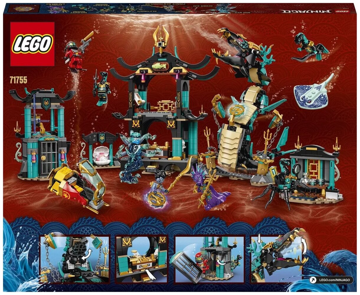- В наборе ниндзя «Храм Бескрайнего моря» (71755) есть подводная постройка со множеством деталей, в которой дети смогут воссоздать приключения из сериала «НИНДЗЯГО: Тайна глубин».