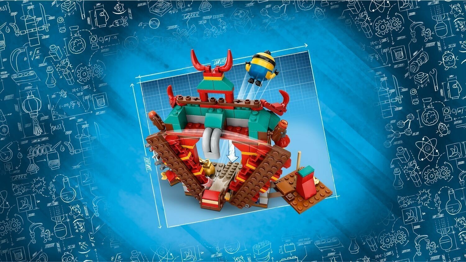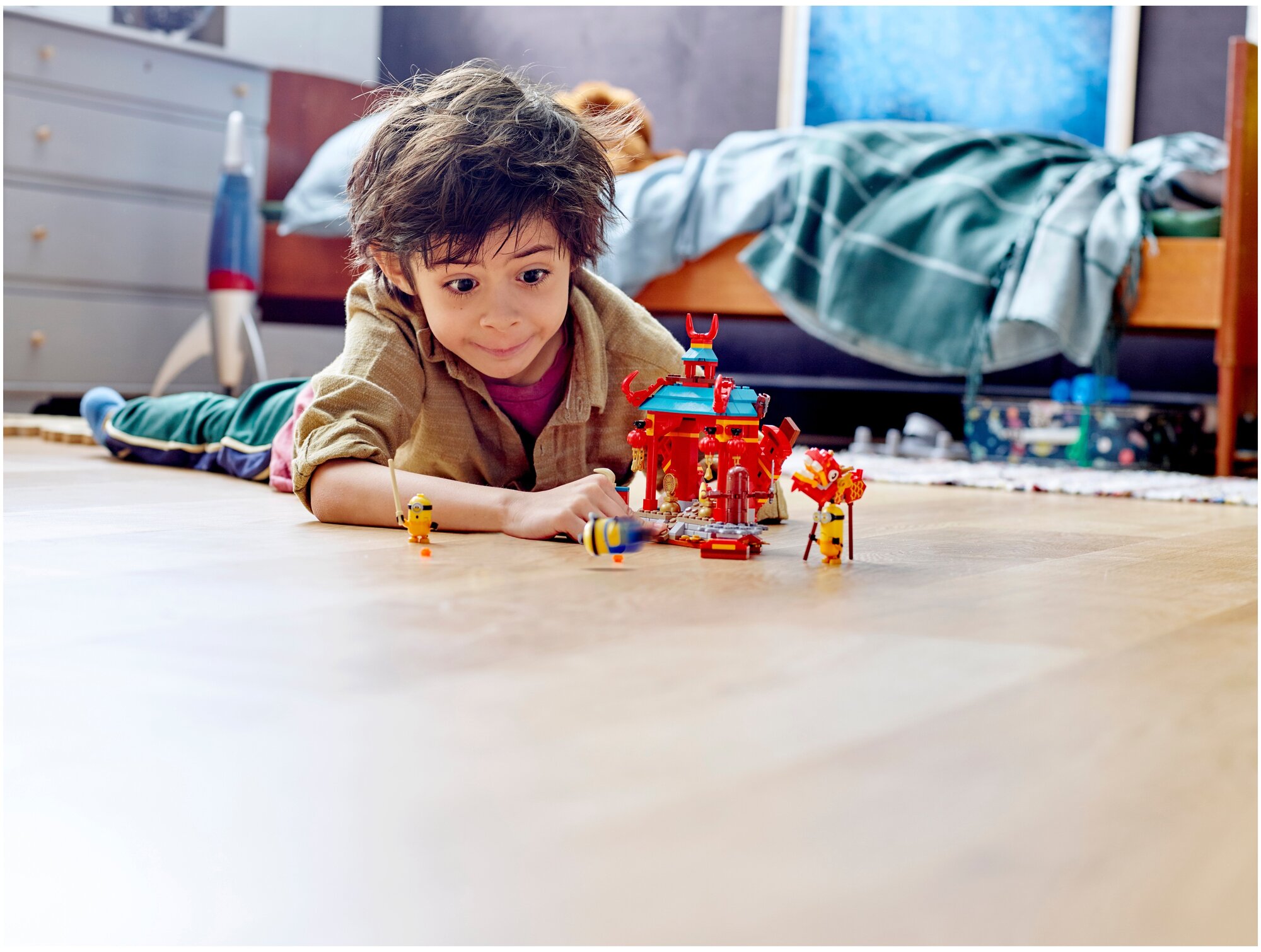Во время активных игр с конструктором LEGO Minions 75550 «Миньоны: бойцы кунг-фу» вы познакомитесь с искусством кунг-фу. После тренировки и обучения мастерству вы сможете устроить классный праздник. Благодаря интересному игровому набору вы оживите сцены красочного китайского Нового года в восточном храме. С вашей помощью любимые персонажи одолеют любых злодеев и станут мастерами кунг-фу. На празднике вас ждет настоящее шествие с китайским драконом и яркий фейерверк из пушек на крыше священного храма. Когда все герои займут свои места, из дверей храма появится легендарный Отто. Проявите воображение и придумайте больше интересных сюжетов для захватывающей игры. А если захотите, повторите уже знакомые вам сценарии.