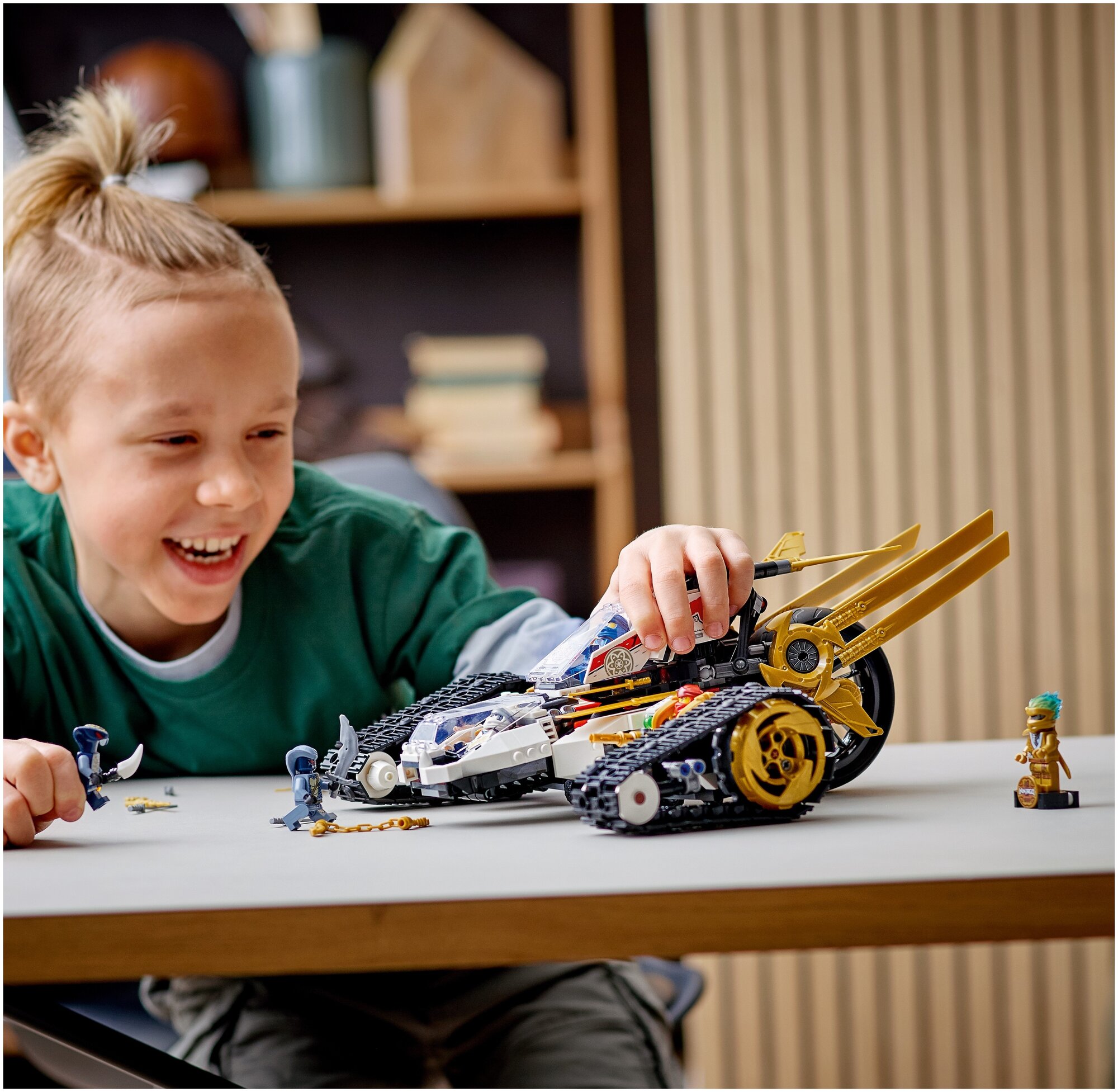 С помощью этого современного обновления «Сверхзвукового самолета» (71739) дети смогут воссоздать потрясающие приключения из первого сезона сериала LEGO® NINJAGO®. Боевую машину «4 в 1» можно разобрать, чтобы создать отдельные игрушки: мотоцикл, реактивный самолет с пружинными шутерами и 2 вездехода.