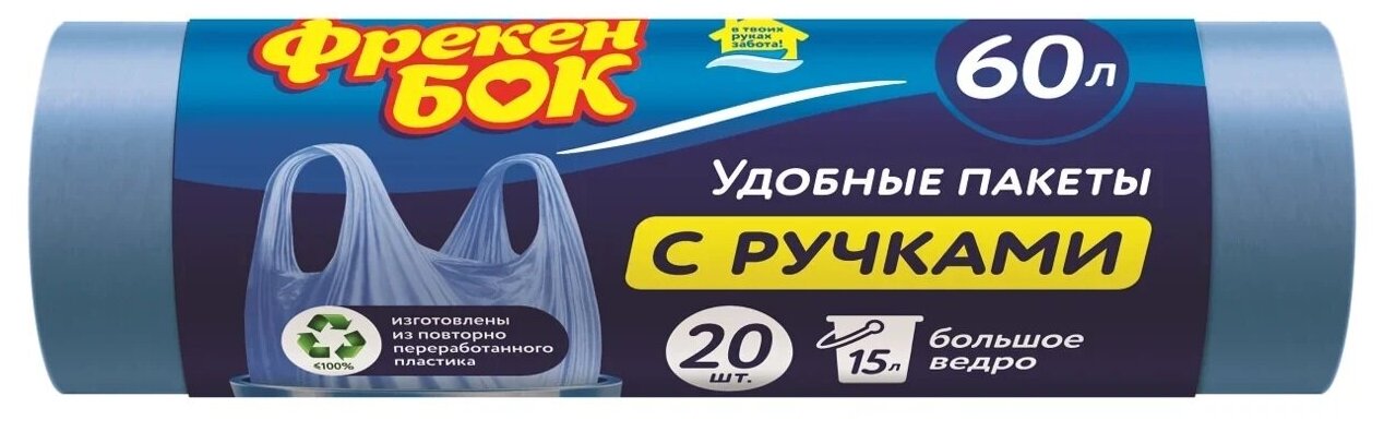 На сегодняшний день товар «Пакеты для мусора "Фрекен Бок" HD с ручками синие 60л 20шт. (16501222)» можно купить с кешбеком в 1 магазине: Яндекс.Маркет