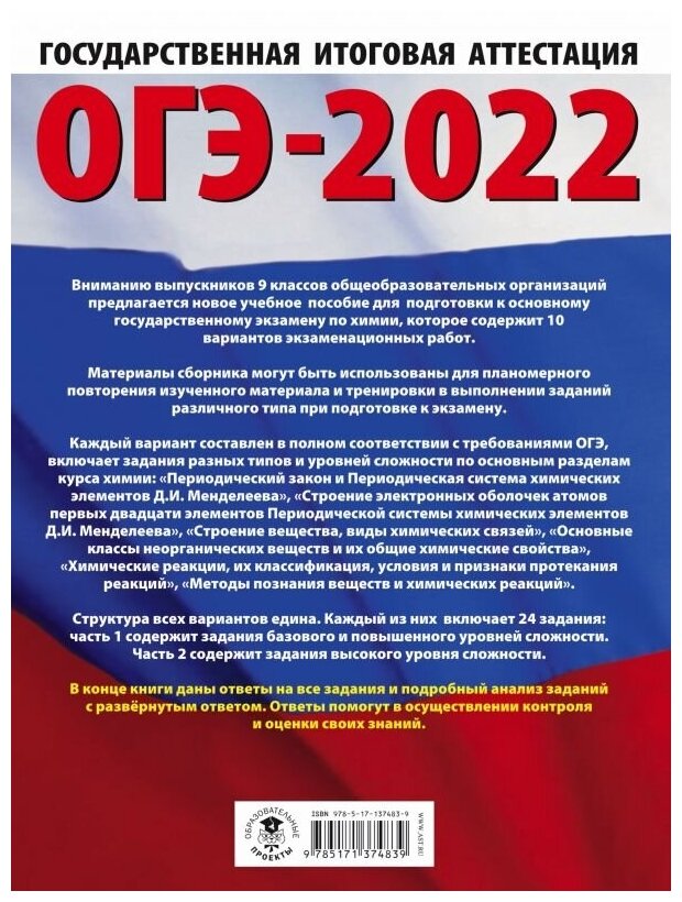 ОГЭ-2022. Химия (60x84/8). 10 тренировочных вариантов экзаменационных работ для подготовки к основному государственному экзамену (Анна Купцова, Антонина Корощенко); АСТ, Образовательные проекты, 2021