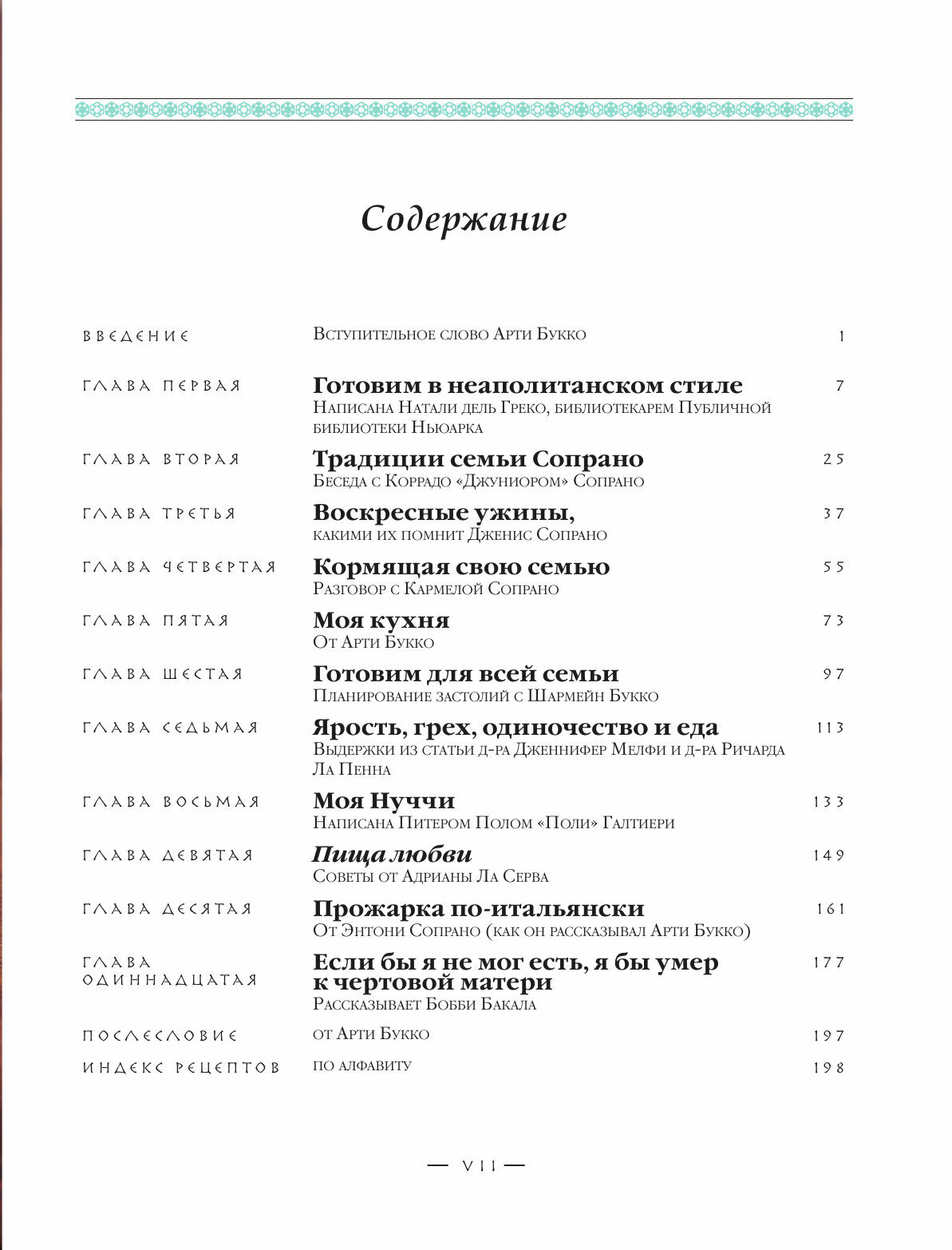 Еда для итальянцев — это не только топливо для тела. Еда — это la gioia di vivere, вкус к жизни. Еда — это семья, традиции, рождение, конфирмация, свадьба, болезнь, смерть, — сама жизнь. Италоамериканец без еды все равно что Чечилия Бартоли без песни. Какой смысл тогда вставать по утрам?