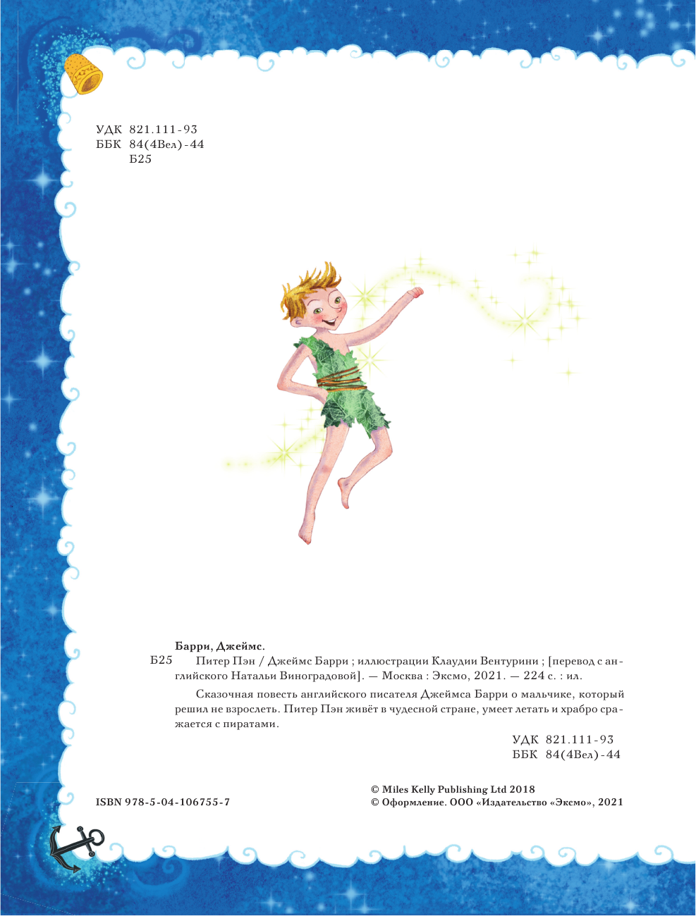 Питер Пэн (ил. К. Вентурини) (Барри Джеймс Мэтью); ООО "Издательство "Эксмо", 2021