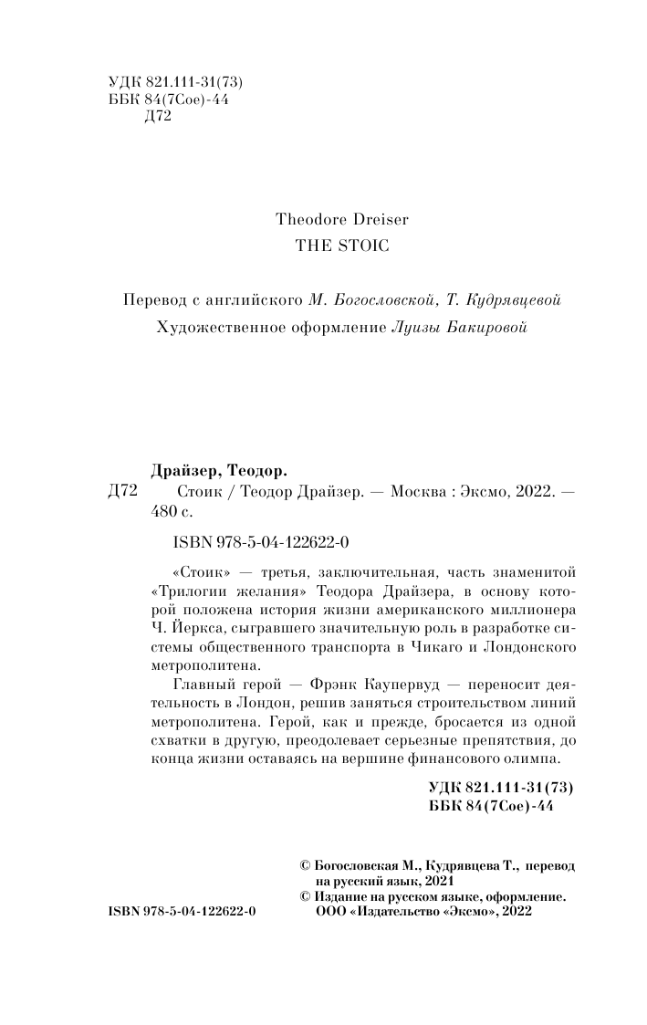 Книга: Стоик (Теодор Драйзер); Эксмо, Редакция 1, 2022