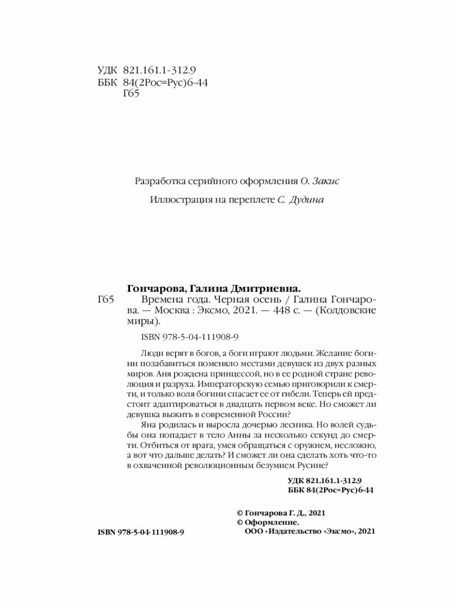 Времена года. Черная осень (Гончарова Галина Дмитриевна); ООО "Издательство "Эксмо", 2021