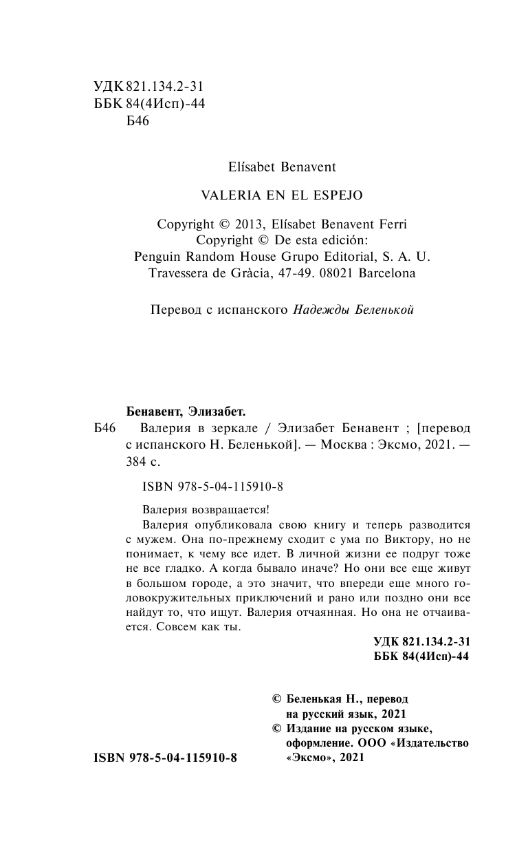 Книга: Валерия в зеркале (Элизабет Бенавент); Эксмо, Редакция 1, 2021