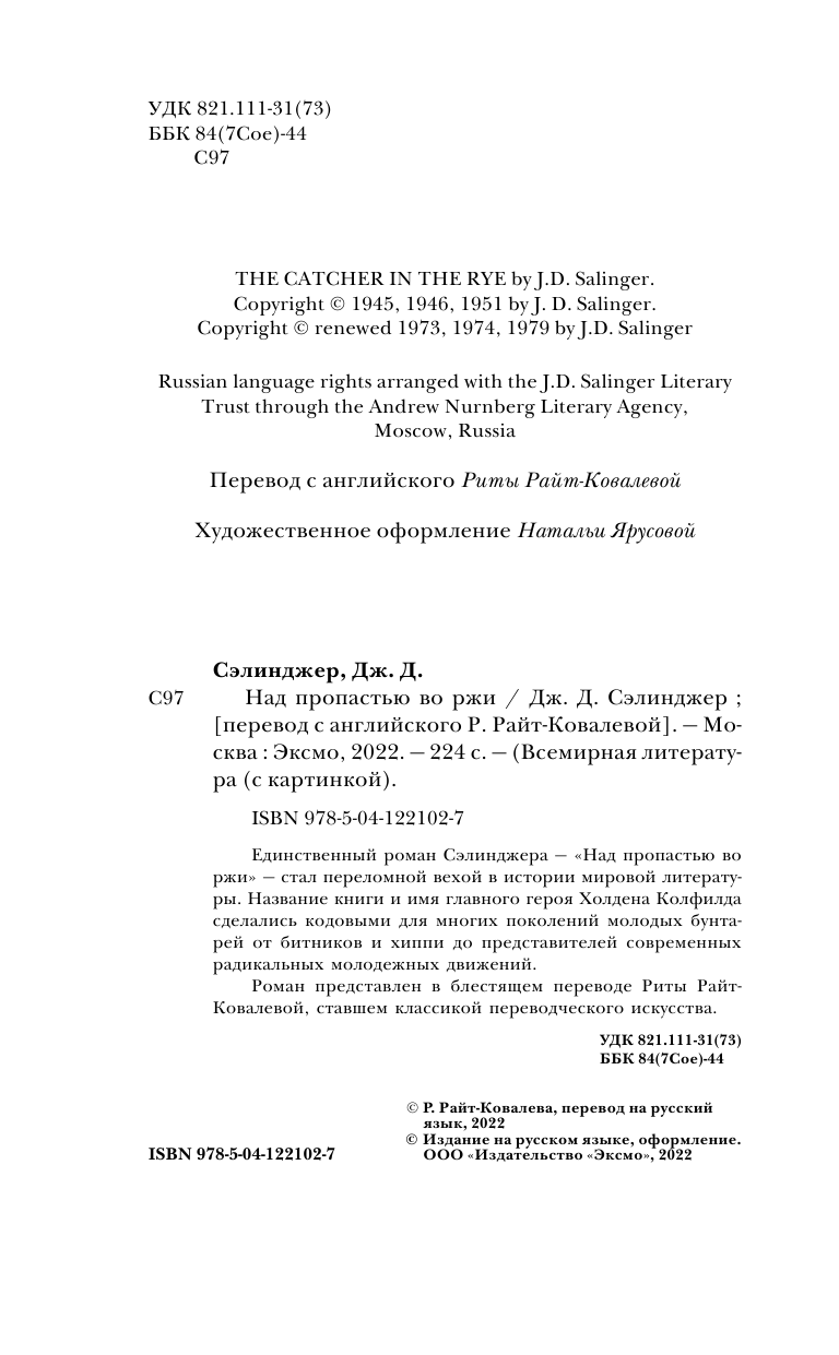 Книга: Над пропастью во ржи (Сэлинджер Джером Дэвид); Эксмо, Редакция 1, 2024
