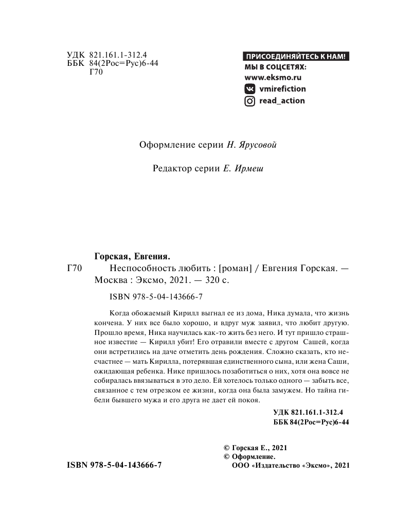 Книга: Неспособность любить (Горская Евгения); ООО "Издательство "Эксмо", 2021